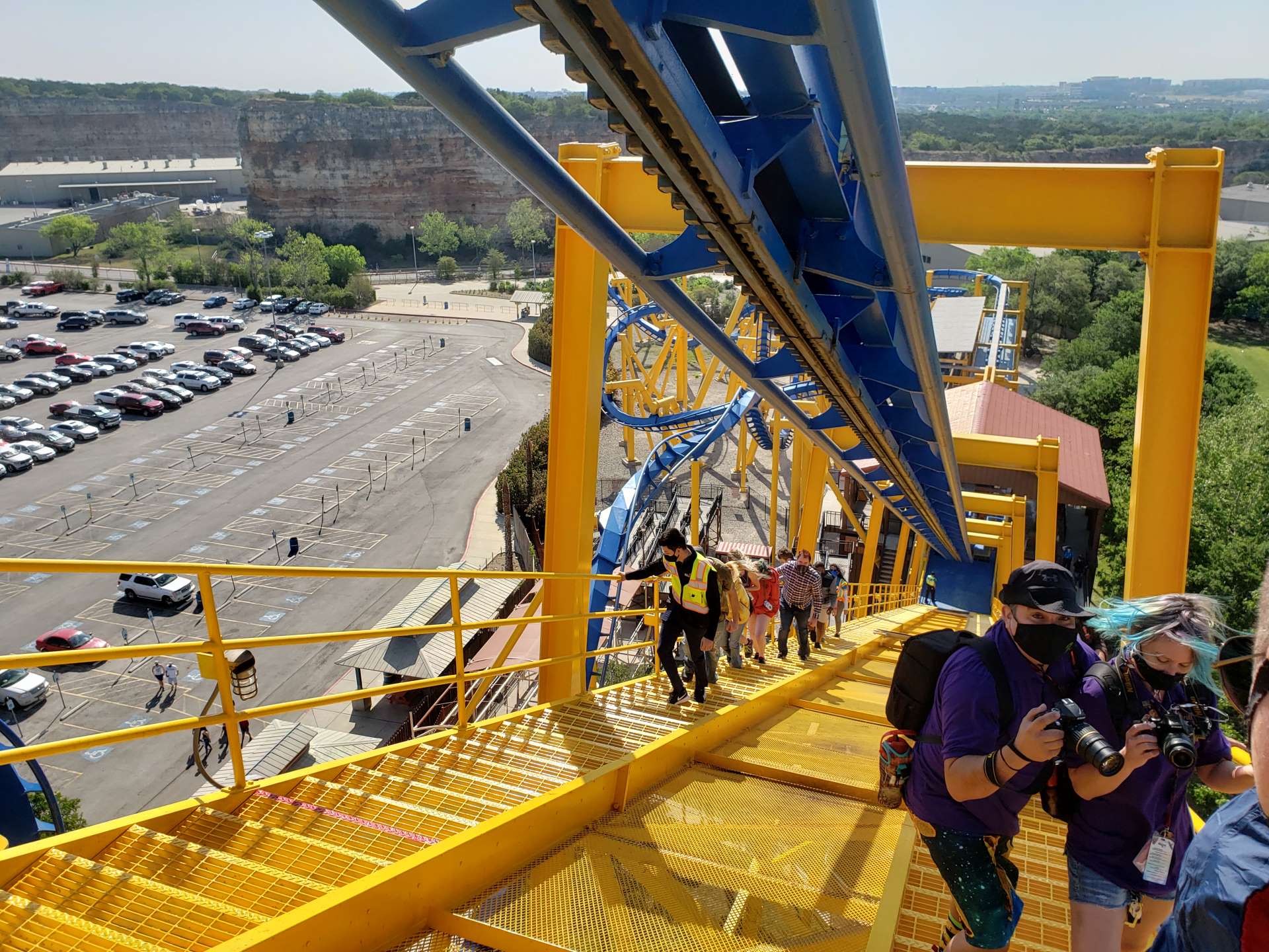 The morning started with a climb up the lift hill of Goliath. And wind. Lots of wind. Of note, there was more wind at the top of the lift hill of Goliath. But no problem. The chill and the bluster didn’t take away from the fun of climbing to the top of a Bolliger & Mabillard coaster.