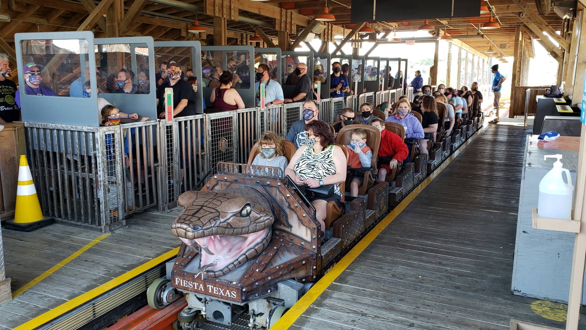 Before the spring crowds were let into the park, attendees were skirted around them to grab first rides on the park’s signature ride, Iron Rattler. A Flash Pass ticket for the coaster was also handed out at registration.