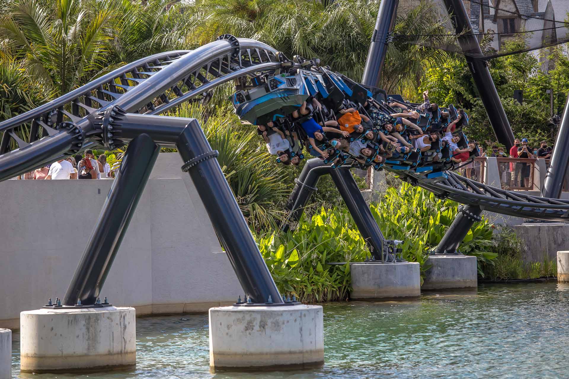 ACE Florida Regional Rep Michael Christopher is impressed by the coaster’s unique split personality. “I love that the coaster is split into two parts. The first part is a twisting and compact maze of elements with pockets of airtime and intense maneuvers. Then the second launch introduces a whole different ride with smooth transitions and inversions over water.”