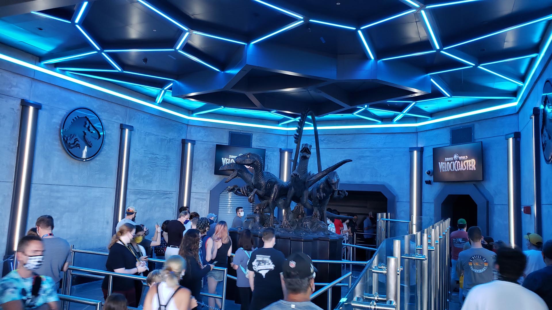 Excitement builds in the VelociCoaster station. View full-sized image.