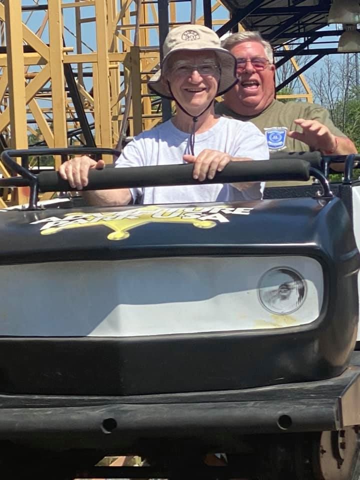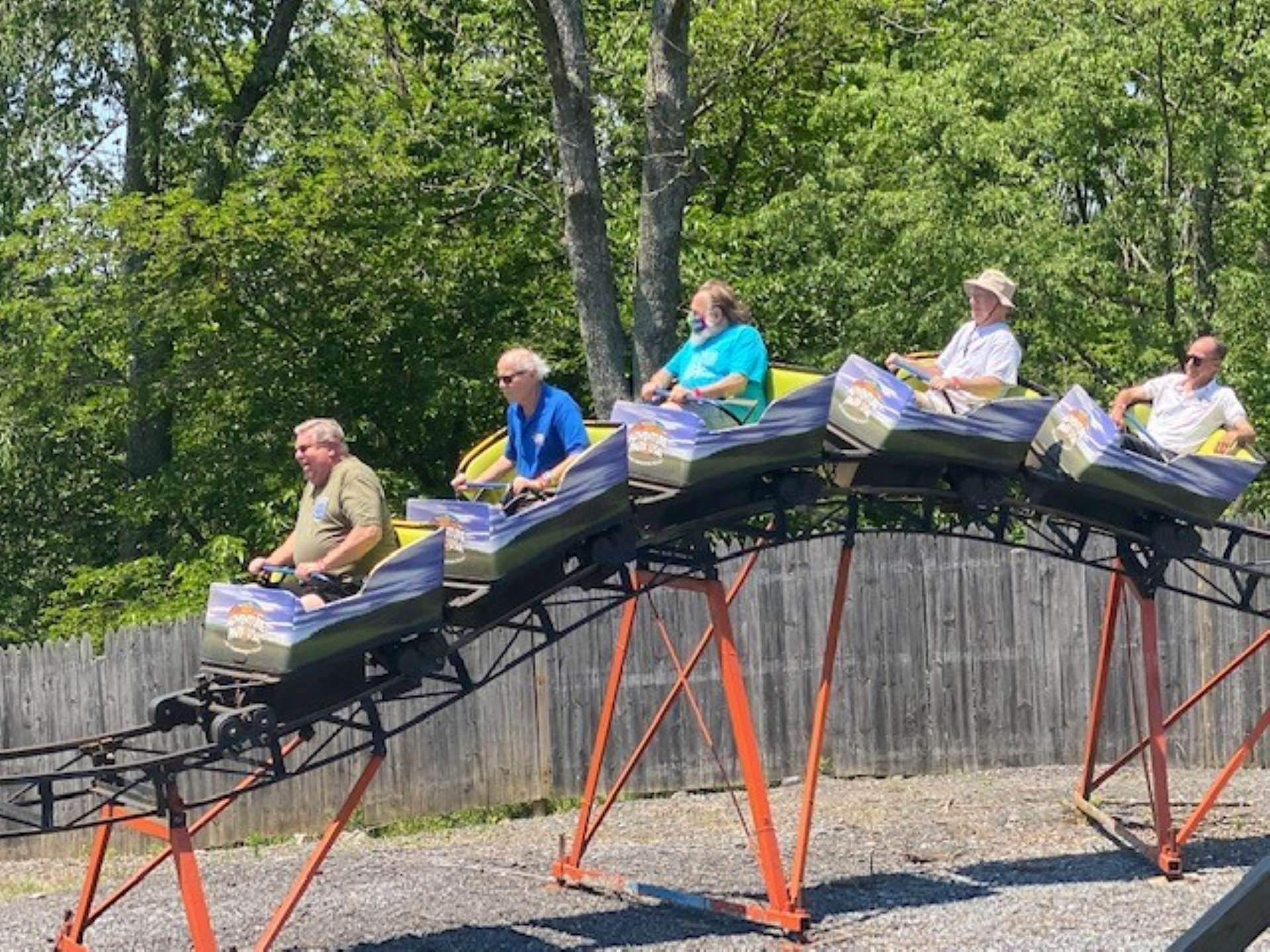 Ninety-degree weather and a beautiful sunny day welcomed 13 ACE members and their guests to Adventure Park USA in Monrovia, Maryland, on Saturday, June 5. Adventure Park USA is home to three relocated and refurbished coasters that are in top shape, thanks to the diligence of COO Eric Stottlemeyer and his team. Owing to COVID-19 precautions, this year’s event was a bit different from ACE Mid-Atlantic’s traditional Wild West Fun Day, but that didn’t change the remarkable offerings that a visit to the small, western Maryland park offers. Attendees purchased their ride wristband directly from the park (either online prior to visiting or when they arrived), then ventured through the arcade and café to the outdoor attractions for a group ride on the Wildcat roller coaster, which continues to offer the best rides of its life, now in its fifth installation.