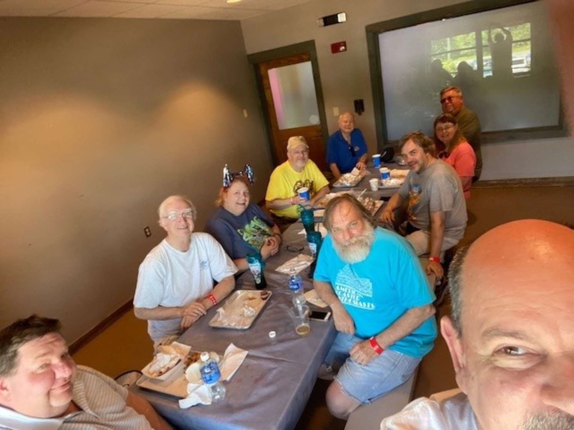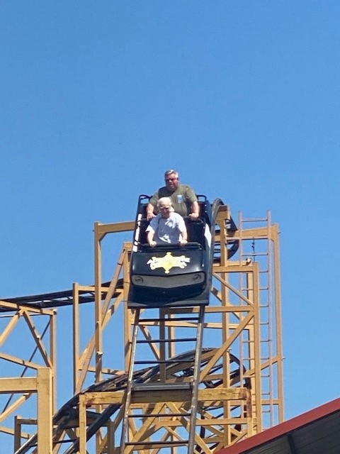 After a trip on Wildcat, all ventured across the park for a quick ride on Tumbleweed, a Miler kiddie coaster. With sweltering temperatures, lunch was a welcome break from the heat. Attendees were offered 25 percent off in the Whistlestop Smokehouse with their ACE membership card. Adventure Park USA kindly gave attendees a dedicated party room for the day as a lounge for everyone to take a break from the heat and enjoy the opportunity to reconnect, as well as gather for the lunch break and some door prizes.