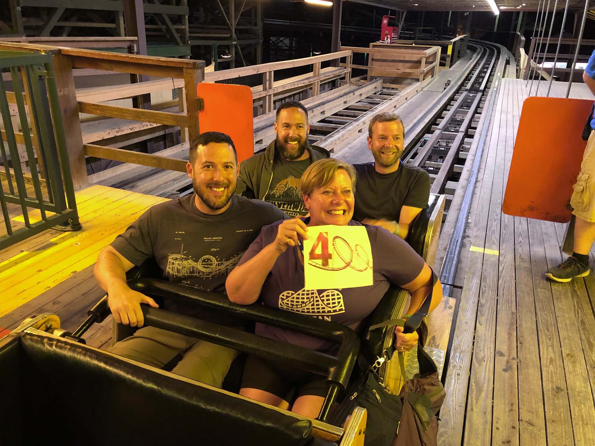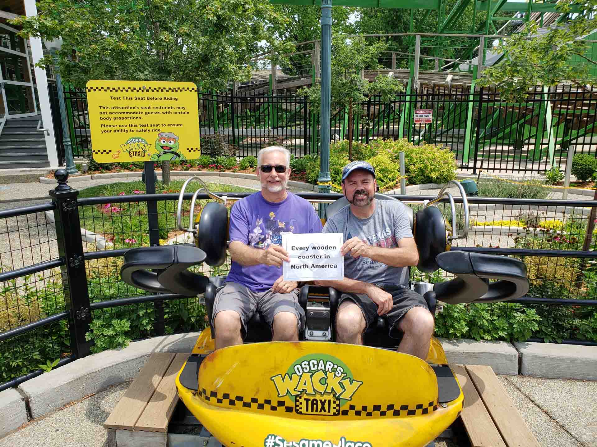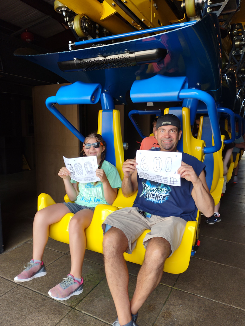 B.D. (Ballast Dummy) and roommate ACE member Rich Wessel enjoy a short ride on Big Dipper at Camden Park in Huntington, West Virginia. This was B.D.’s first ride; Rich has more than 700 and hopes to ride 777 in Las Vegas.