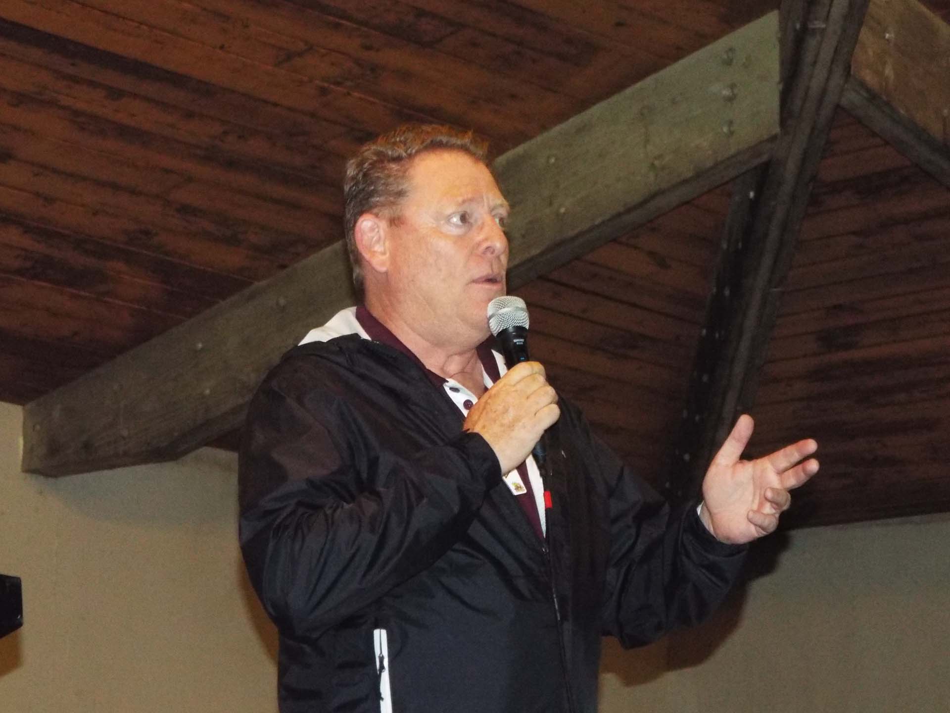 At 1 p.m. attendees gathered for a picnic lunch in Pavilion 5. The menu included chicken fingers, pulled pork, pasta, hot sausage and various sides plus unlimited soft drinks. While eating and socializing, attendees could peruse the silent auction items, which included wood from Thunderbolt, a prop from the old Garfield’s Nightmare and other signs. They could also support Give Kids The World by buying one of 25 blocks of Jack Rabbit wood with the 100th anniversary logo etched in it (the cost of the etching was generously donated by Adam Napotnik), which sold for $25 a piece.