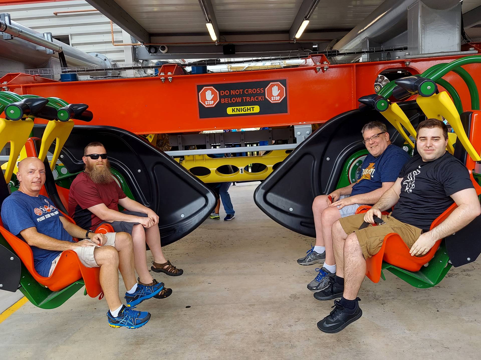 On Saturday, July 24, ACE North Central gathered at Adventureland Park. The day was filled with fun activities that proved that ACEers truly bond over the love of roller coasters. The first activity was a group photo and an informal ride takeover of the new-for-2021 Dragon Slayer. This ride surprised many of the attendees. Many of them had ridden a 4-D Free Spin before, but not many of them had ridden this smaller model. With its mild versus wild side, the informal takeover helped fuel many discussions. “Does the placement of the magnetic fins really determine the intensity?” “Does the smaller model give a better ride than its larger counterparts?” These and many more questions were asked by ACEers. Of course, since the answer was not always clear, the ACEers in attendance rode again and again.