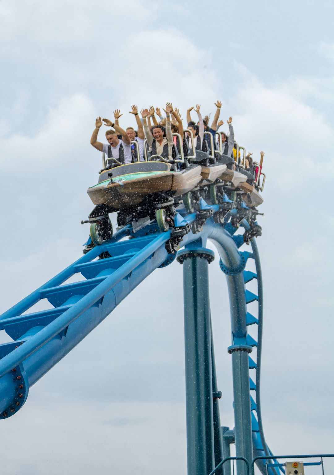 Vekoma continues to solidify itself as a provider of outstanding attractions. The past decade has seen some impressive installations, all worthy of being on an enthusiast’s bucket list. Having previously provided the park with the linear-synchronous-motor-launched coaster Formuła in 2016, the manufacturer’s graceful handiwork is now seen on Abyssus. As if a bigger brother of Formuła, Abyssus has two launches instead of one, and four inversions instead of three. Being interwoven into the watery setting of the new area even accentuates the cool factors of the ride.