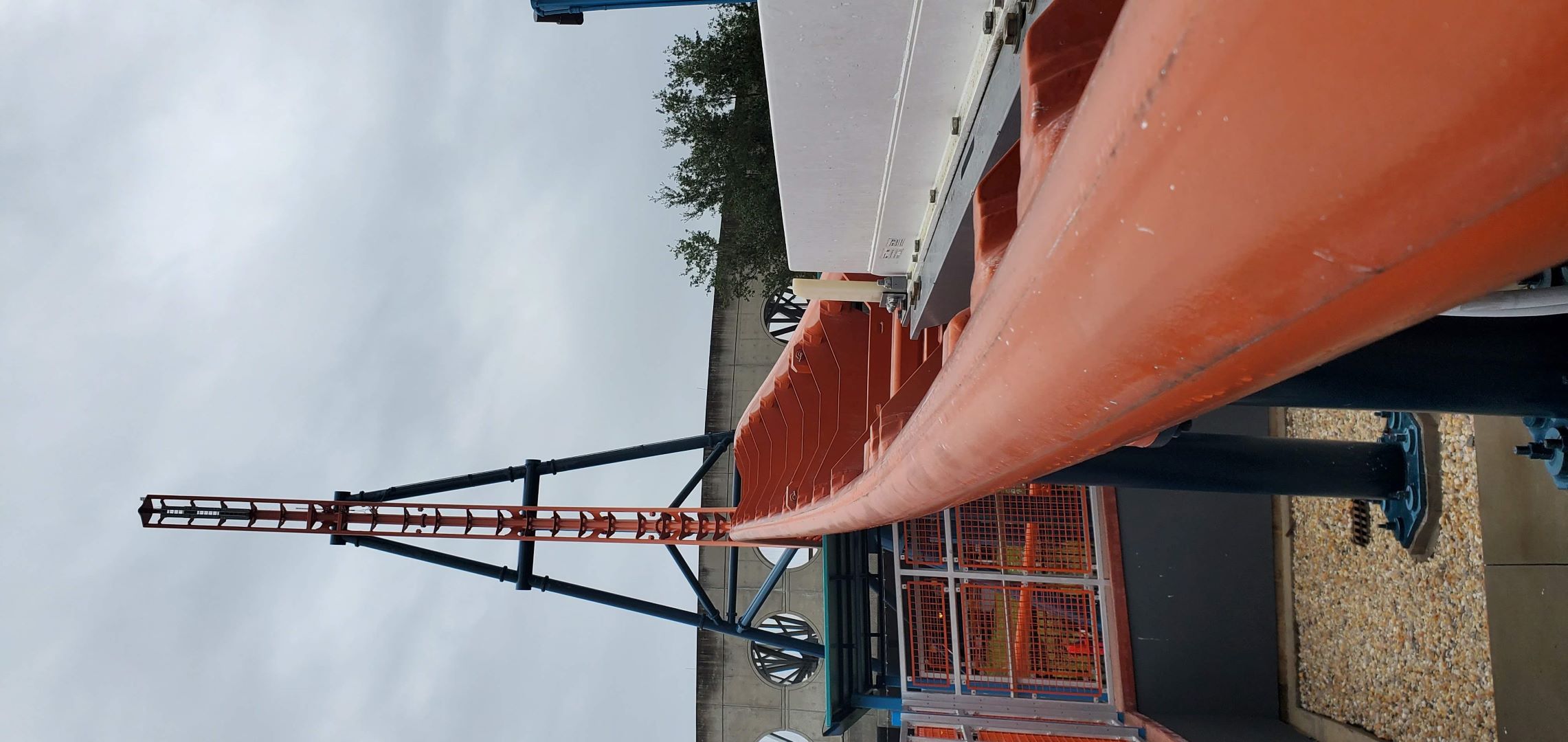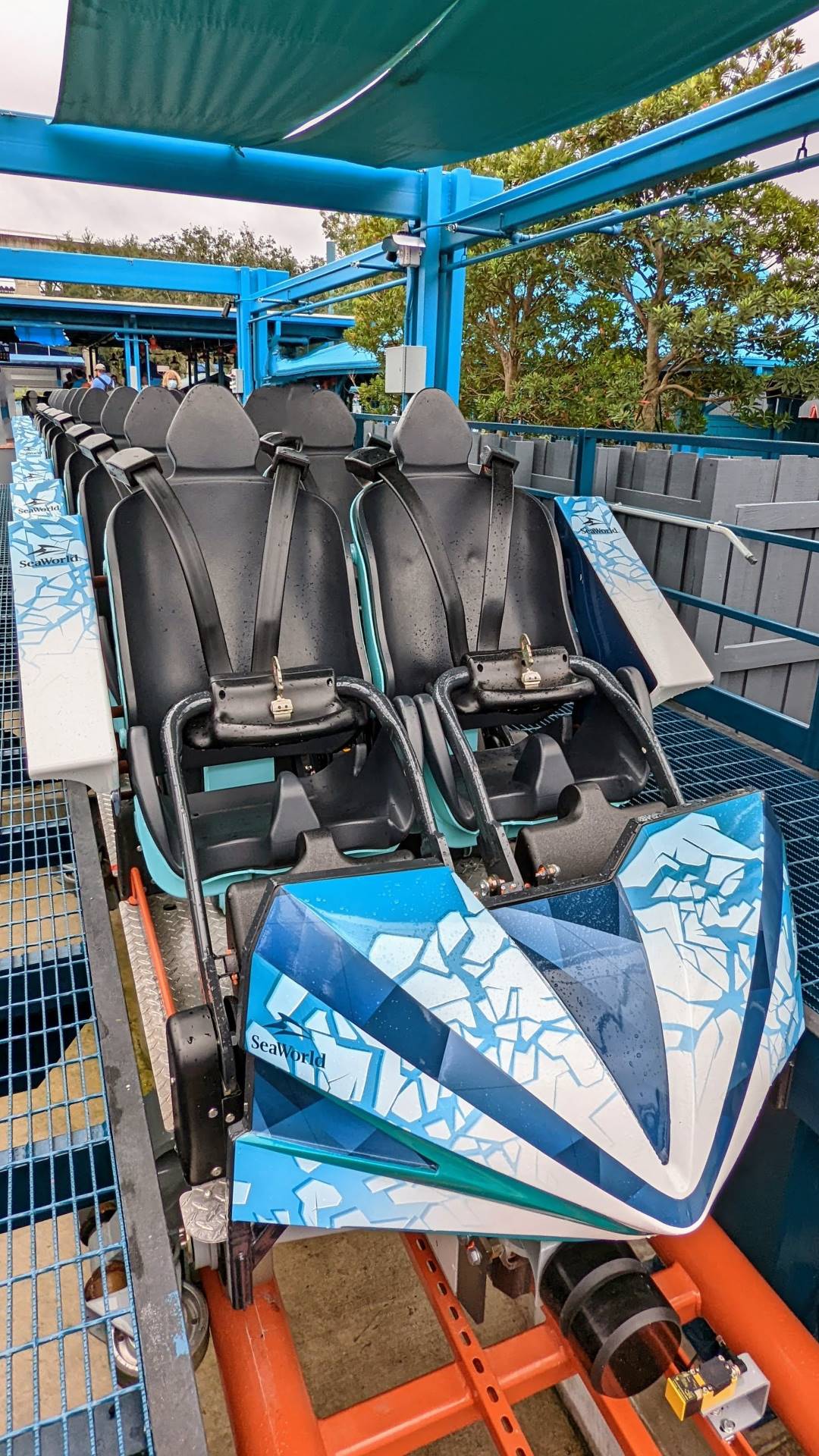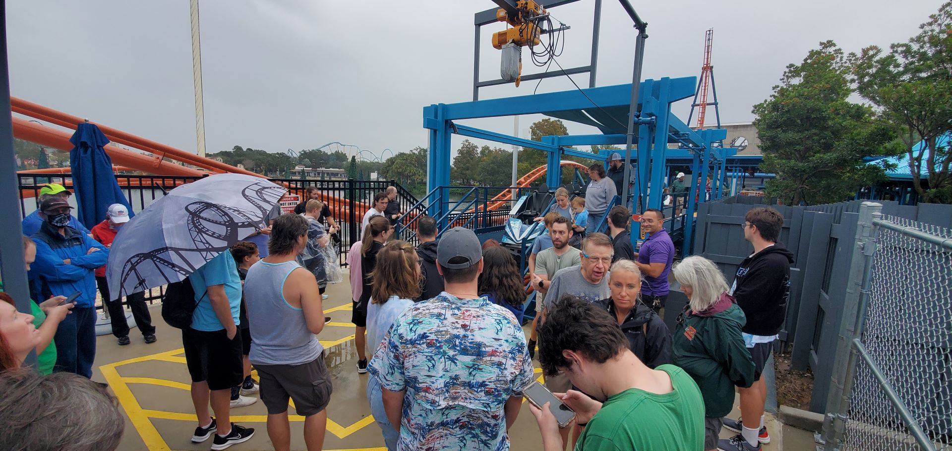 After ERT concluded, attendees lined up for a group photo in front of Mako’s entrance sign, after which the park opened to the public. ACEers had a couple of hours to enjoy the park’s rides and shows until attendees met at the Ports of Call pavilion for a buffet barbeque-style lunch. The hamburgers were almost bigger than the plates! While everyone enjoyed their lunch, they listened to two guest speakers from SeaWorld’s maintenance department. Charlie Pickering and Greg Benoit, both maintenance supervisors, answered many questions from the group, which included why comfort collars were included on Ice Breaker. Pickering went on to clarify that the comfort collars were included on the trains because SeaWorld wanted multiple rides to be interchangeable for parts. This meant that all trains manufactured by Premier Rides for Busch and SeaWorld parks would be the same trains. Those coasters are Tigris at Busch Gardens Tampa Bay, Tempesto at Busch Gardens Williamsburg, Electric Eel at SeaWorld San Diego and now Ice Breaker at SeaWorld Orlando.