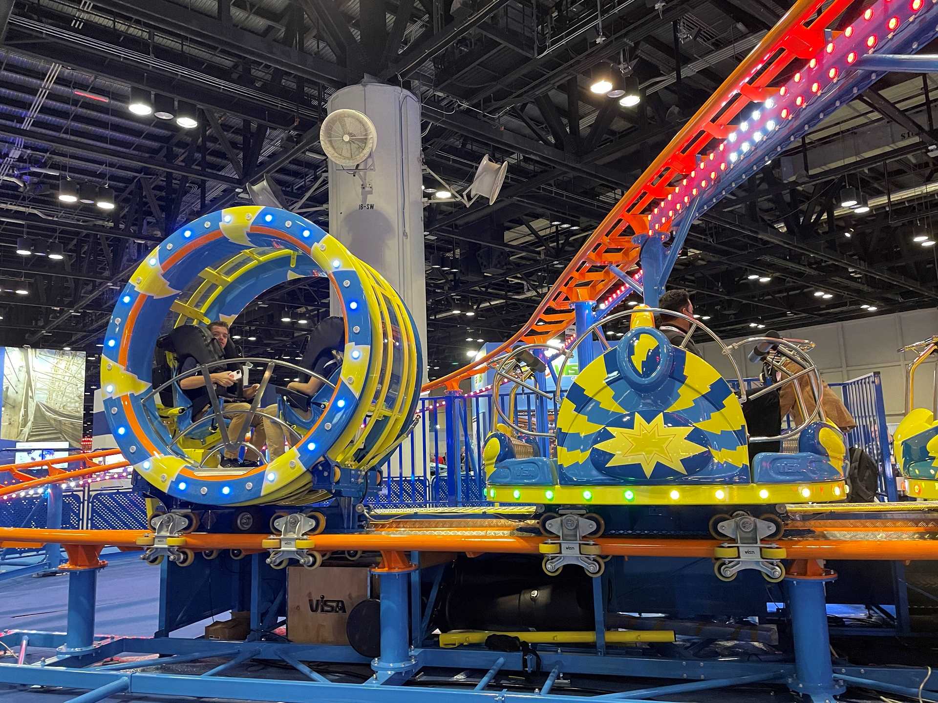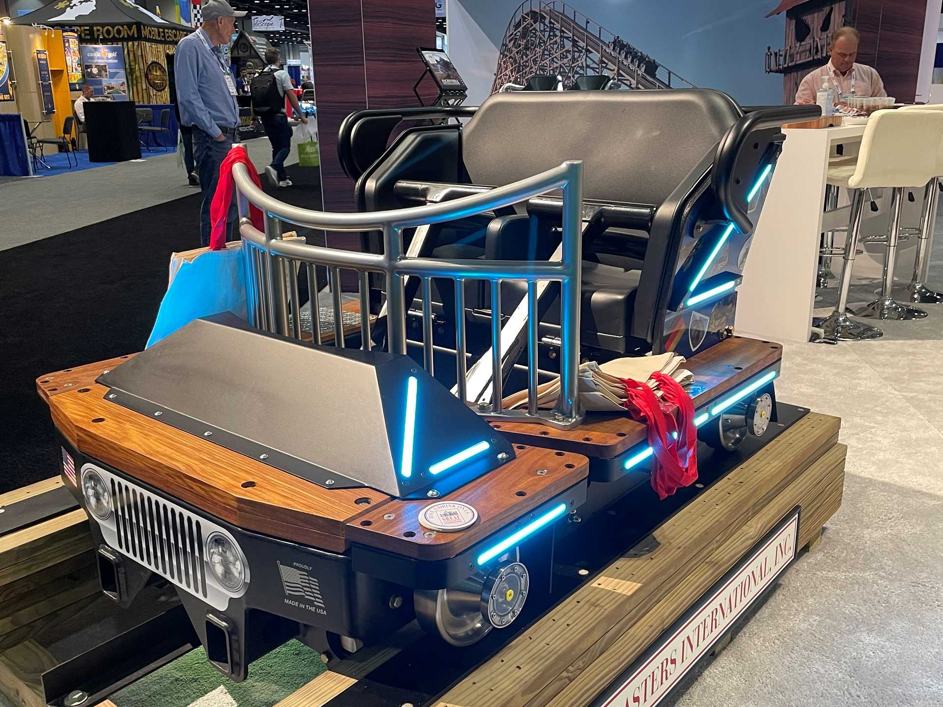 The car on display at the Great Coasters International Inc. booth had lights to give it a flashy look.