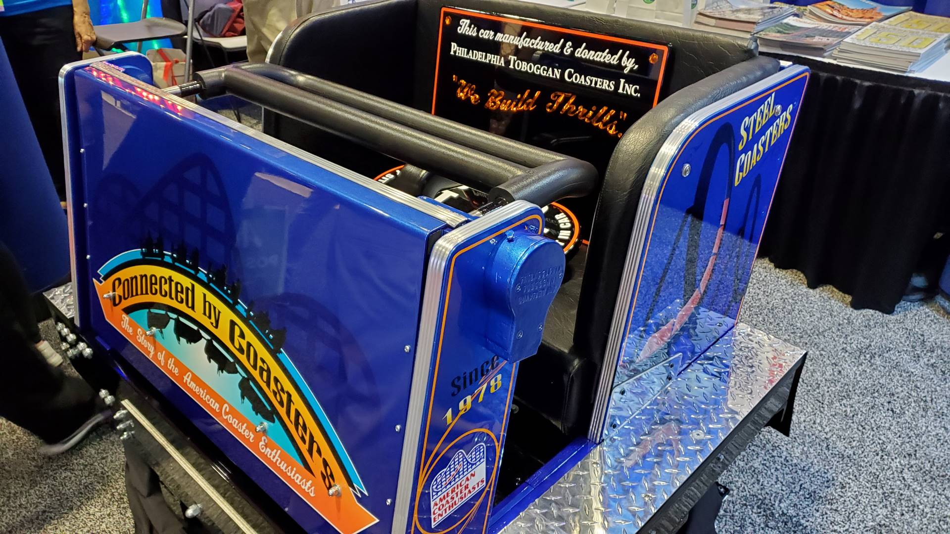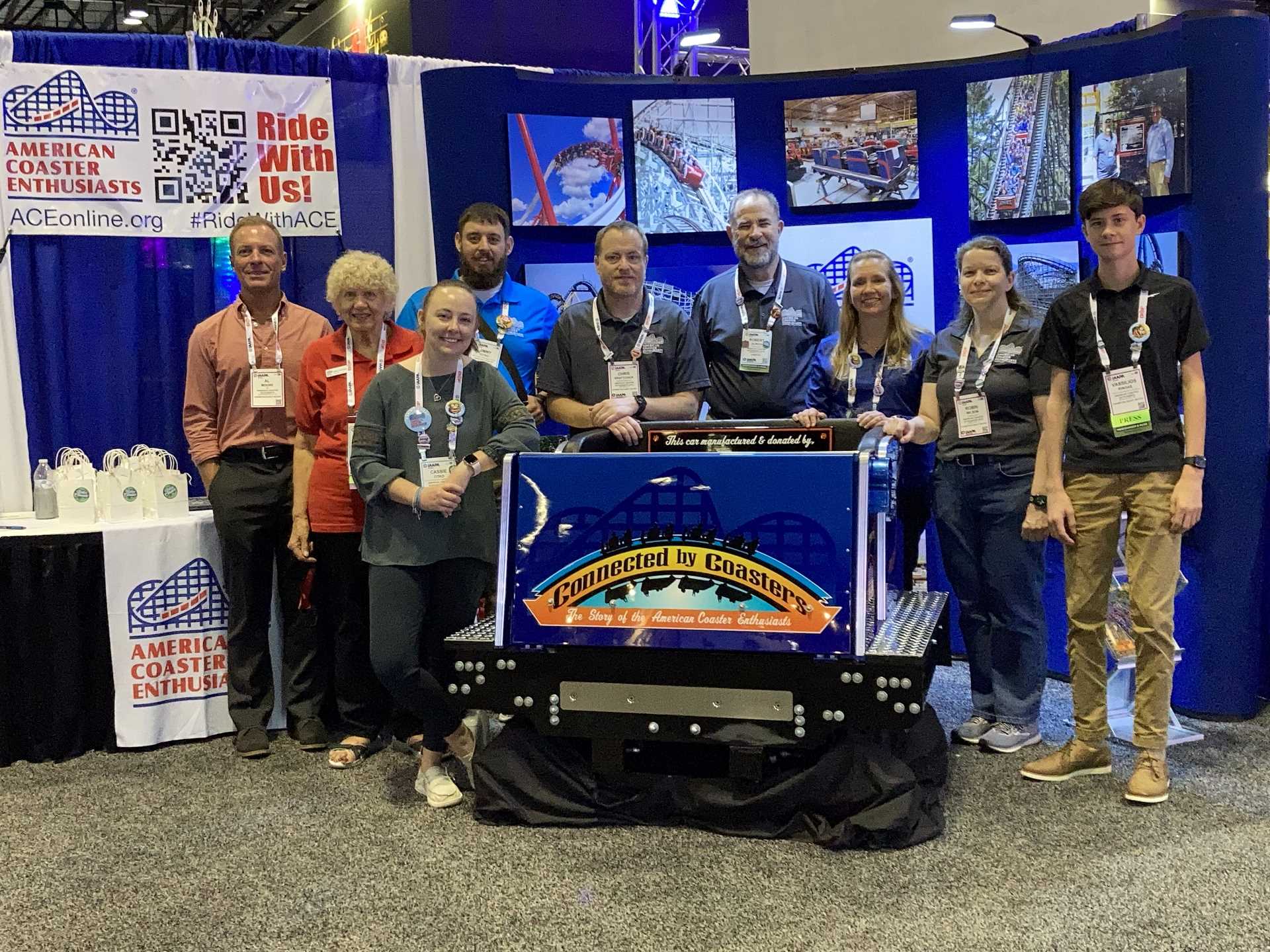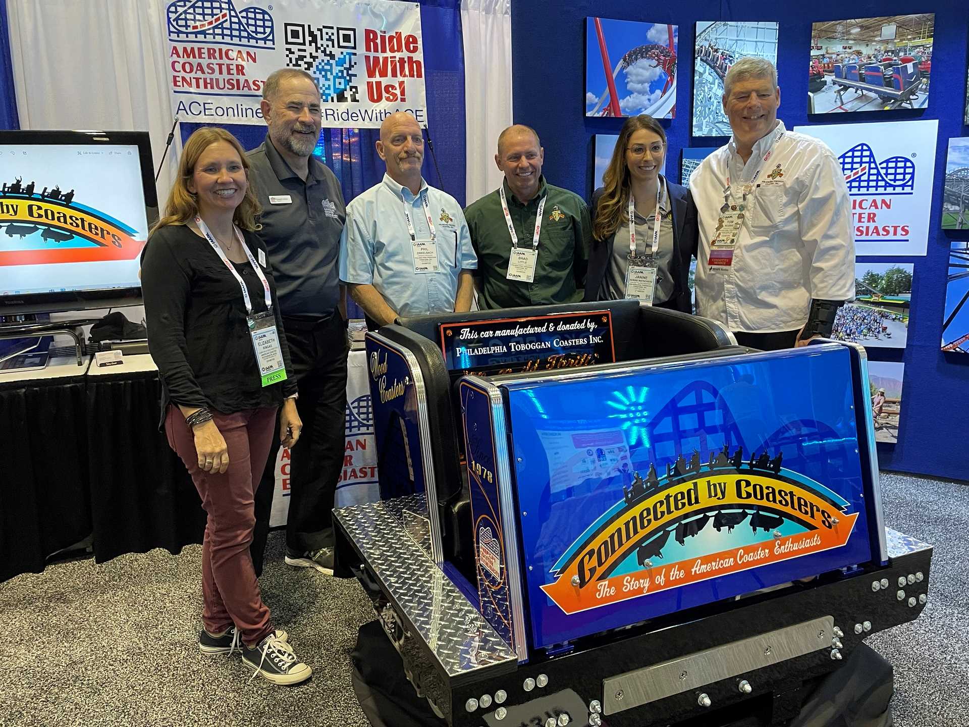 American Coaster Enthusiasts volunteers were busy at ACE’s booth, which featured photos from the 2021 and 2022 host parks, a beautiful slideshow tribute to ACE Roller Coaster Landmarks and Classic Coasters as well as recognition of our corporate members. New for 2022 was a stunning Philadelphia Toboggan Coasters, Inc., coaster car wrapped in ACE’s 2022 theme — Connected by Coasters, featuring the logo and a shout out to both wooden and steel coasters. This car will be on display again in 2022 and will then be auctioned off to one lucky ACE member to enjoy in his or her home. Members can watch for more to come in 2022 from Connected by Coasters as the club celebrates the healthiness of the hobby — and how hobbies evolve into so much more.