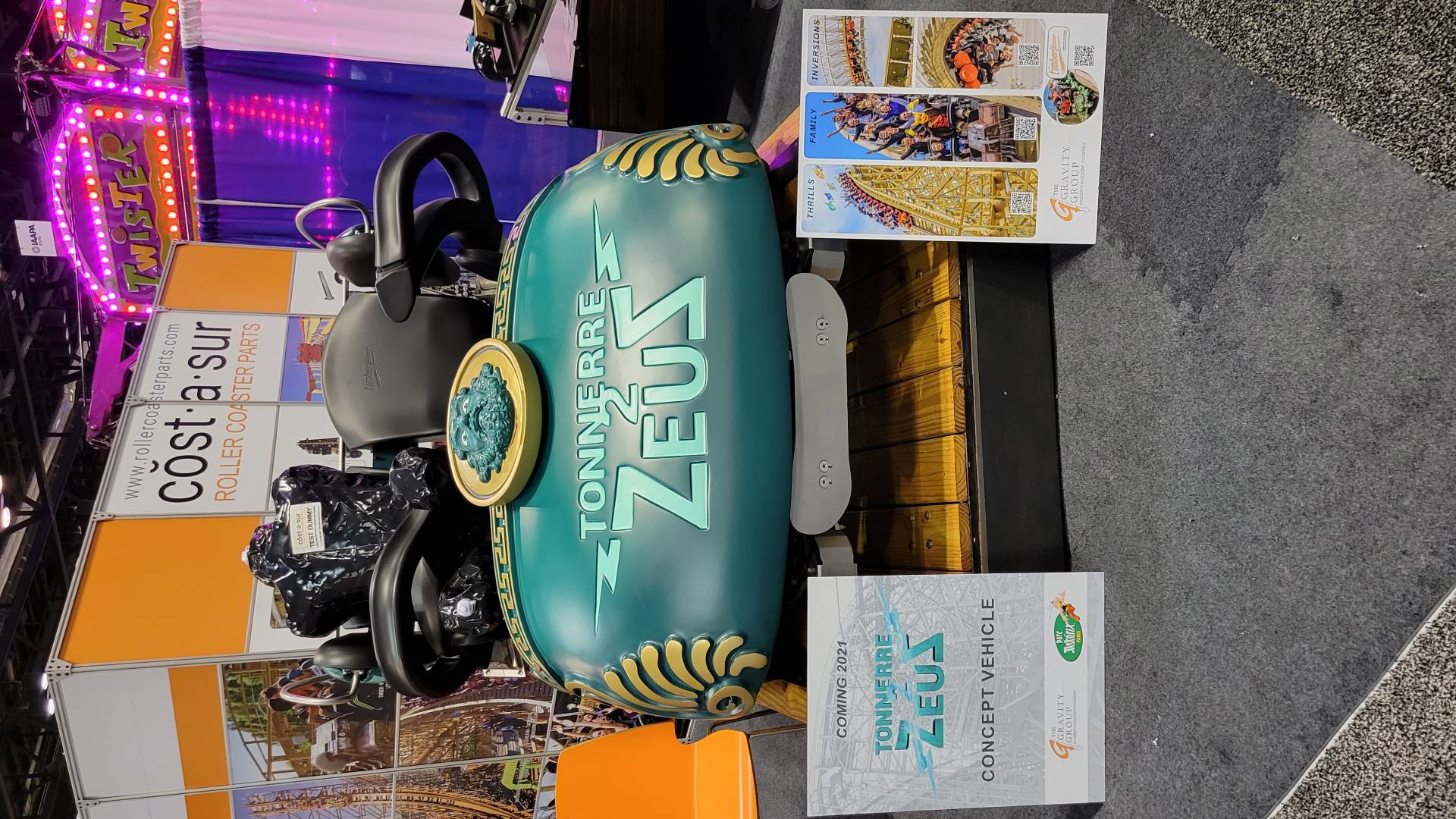 For coaster fans, excitement was in the air with a variety of trains displayed on the show floor, including the reimagined new car for Tonnerre 2 Zeus from The Gravity Group. Fun Spot America Atlanta announced the details of ArieForce One being constructed by Rocky Mountain Construction, which was displaying the car in its booth. View the press conference here: