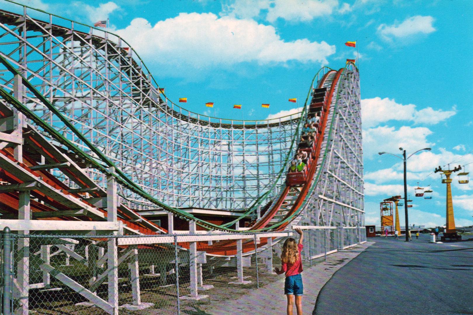 When Parker spoke in 1965 to John C. Allen, the then-president of the coaster-building firm Philadelphia Toboggan Company (PTC), about designing and building his new wooden coaster, he told Allen, “Put in the best thrill you can without cutting any age
