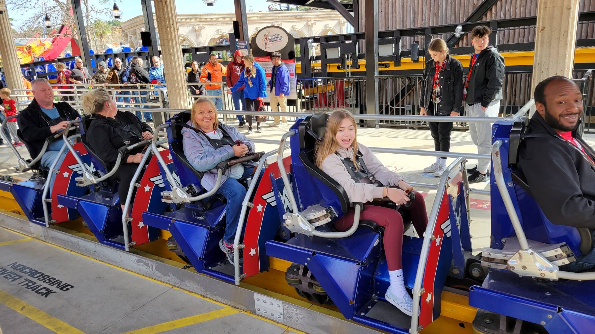 Once inside, the attendees assembled for a group photo in front of the park’s massive Christmas tree in Rockville. From there, it was first rides of the day on Wonder Woman Golden Lasso Coaster before the public was admitted.