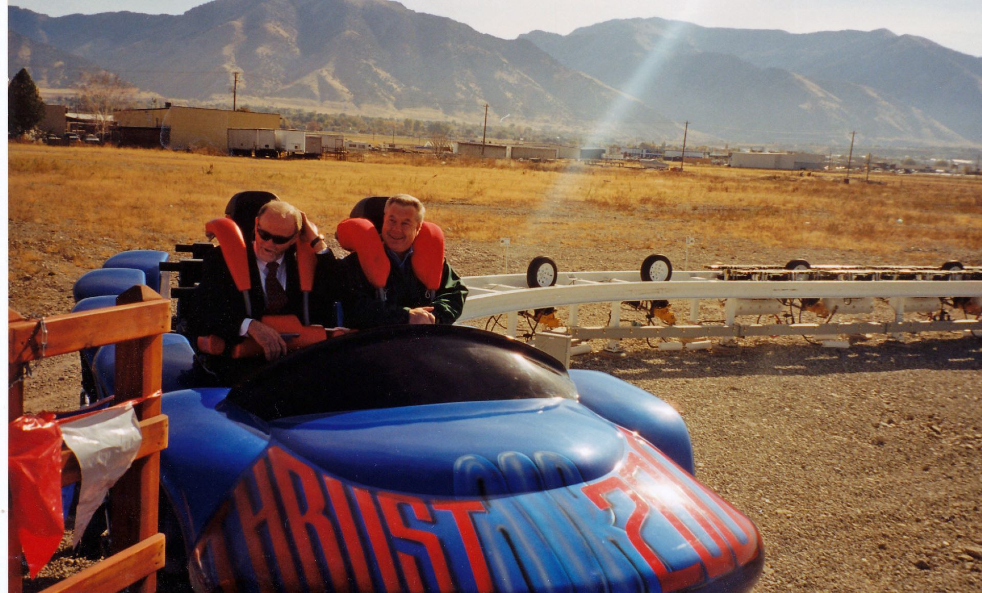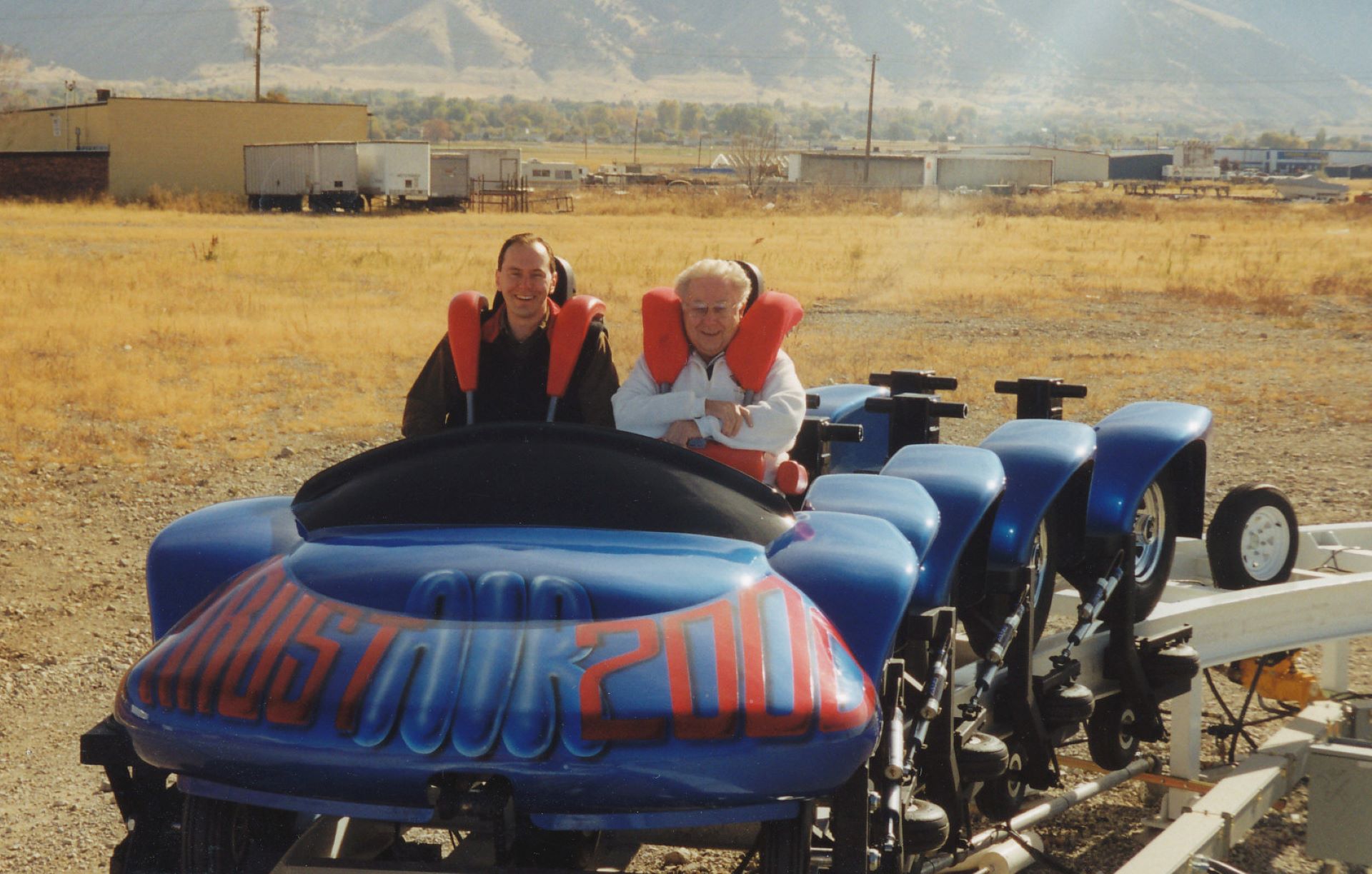 Stan Checketts and Gary Slade take a ride on the prototype Thrust Air 2000.