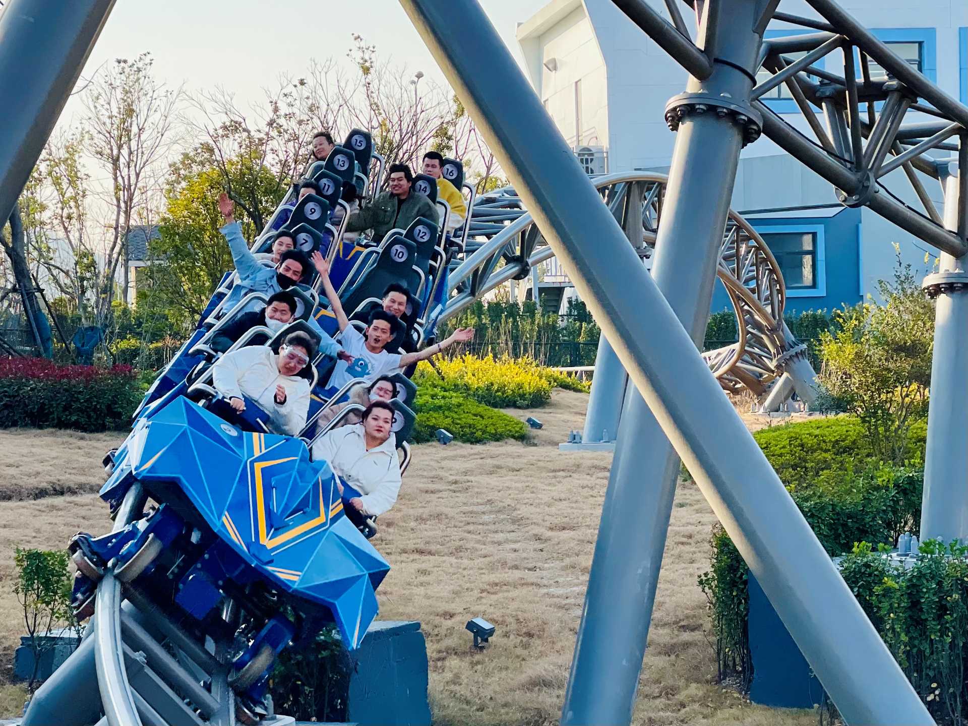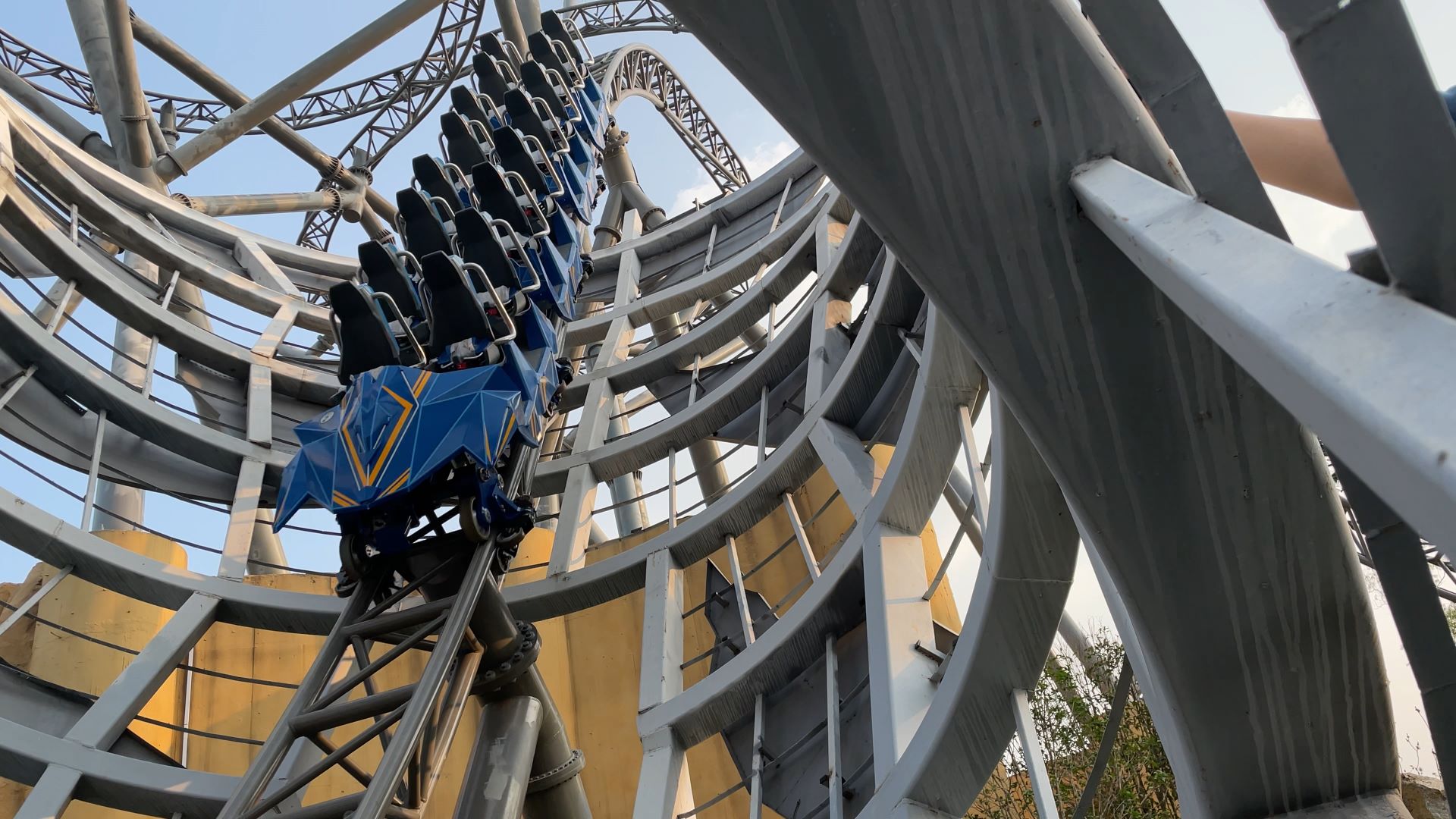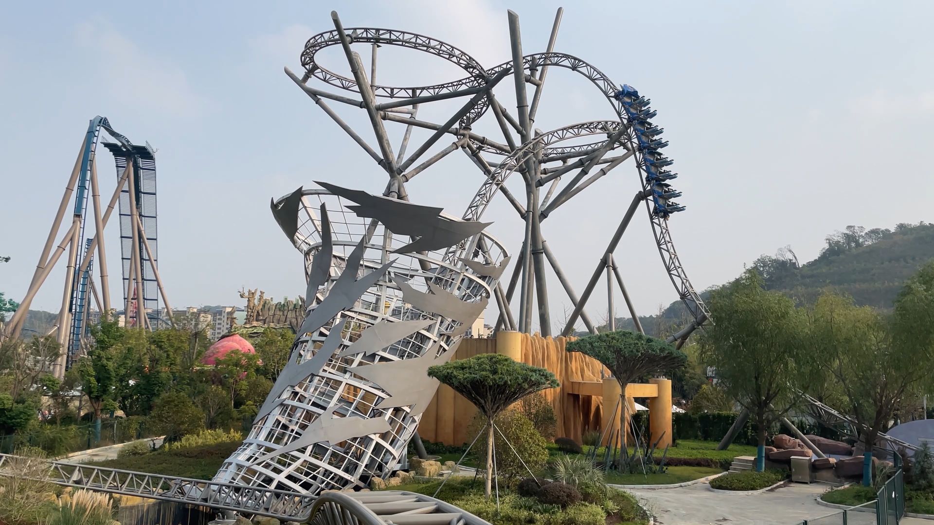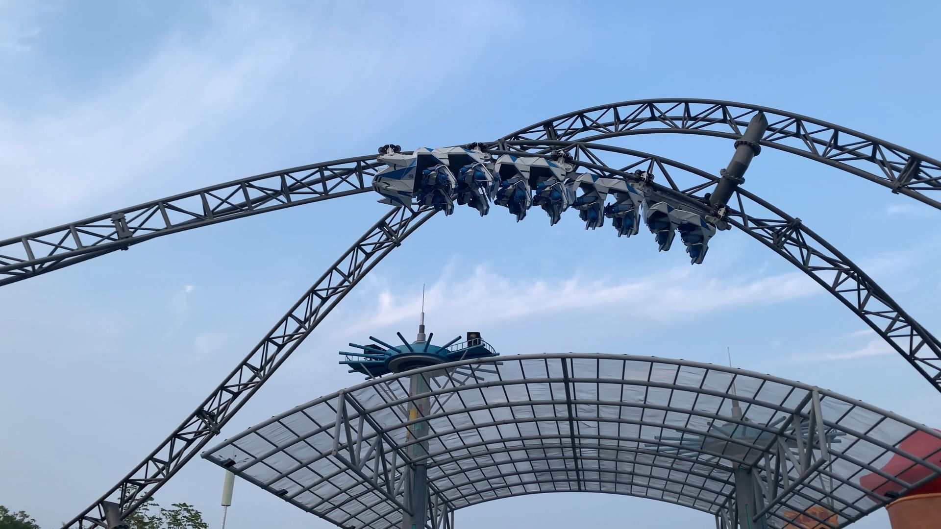 Enter Light of Revenge. This intriguingly named coaster opened at Happy Valley in Nanjing, China, at the close of 2021. Those who have experienced Cheetah Hunt at Busch Gardens Tampa Bay (Florida) will recognize the layout. The iconic bird’s nest/windcatcher tower is a dead giveaway. Intamin Amusement Rides supplied this coaster to the Sunshine State in 2011. Now, the new sibling is a close match but differs slightly in its layout. Slightly. And the one lone inversion is still curiously included.