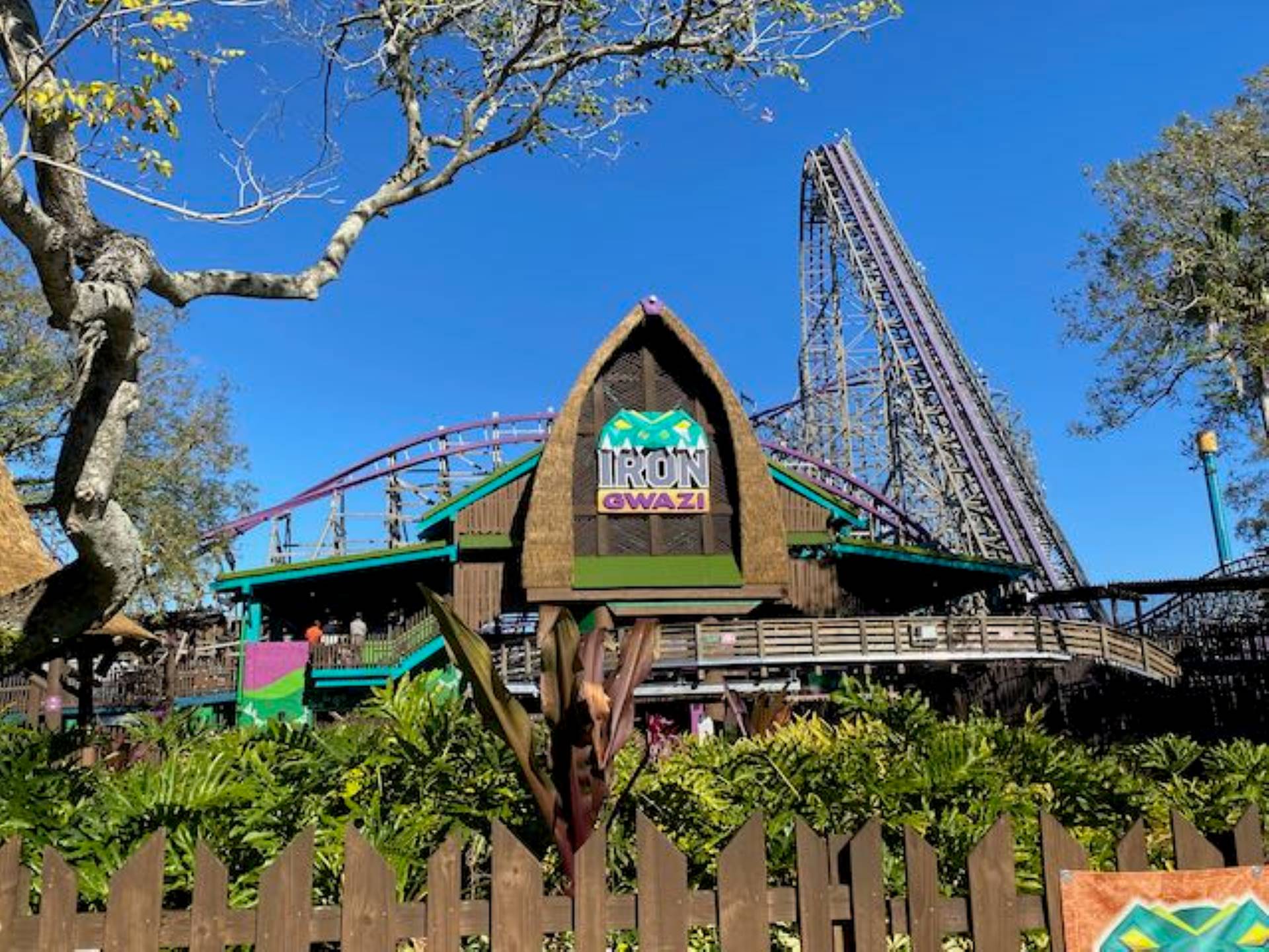 Iron Gwazi takes thrills to new heights, plunging riders from a 206-foot-tall peak into a 91-degree drop and reaching top speeds of 76 mph. Riders will experience a dozen airtime moments, including two inversions, as they sink their teeth into crocodile-inspired thrills.