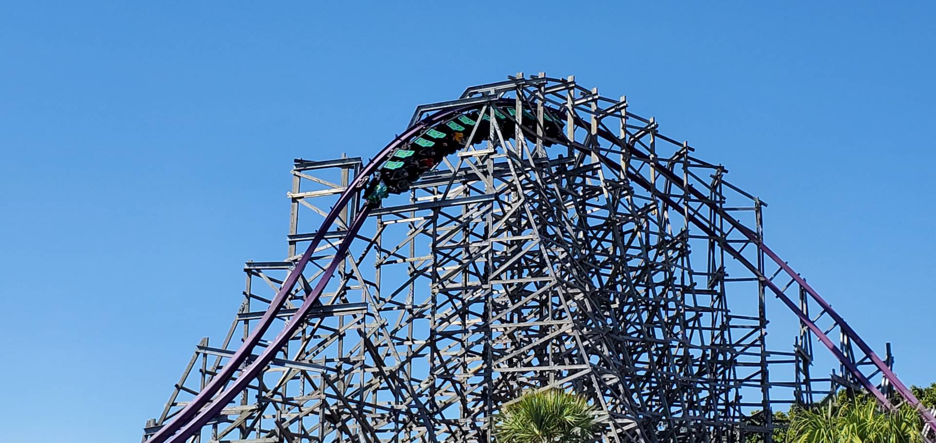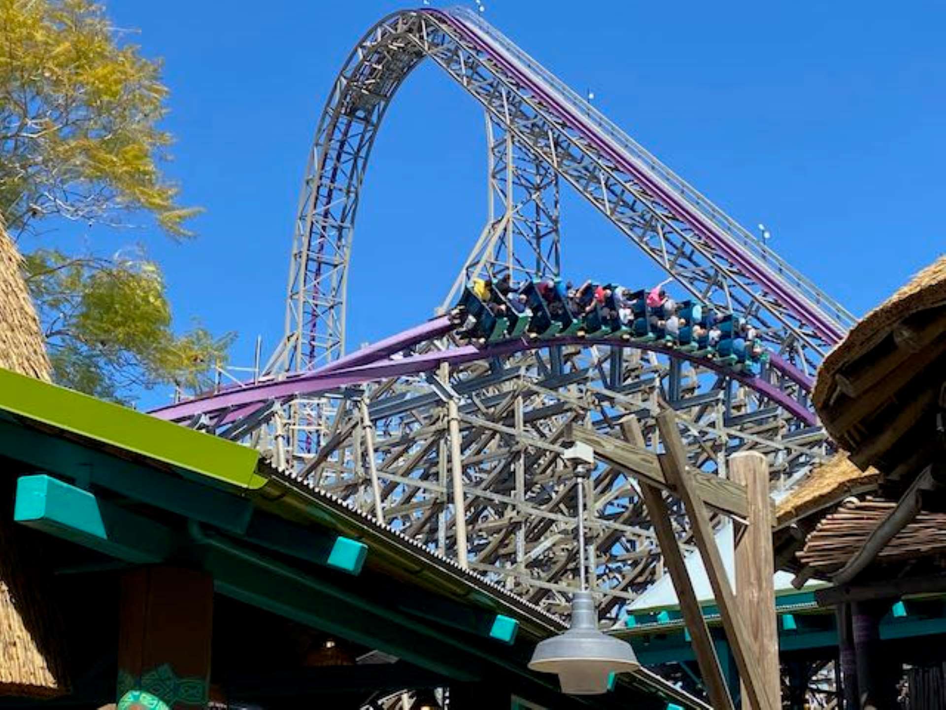 a zero-G stall. Not to mention, the dazzling purple track in contrast to the classic wood adds a sparkling touch to the Florida skyline.