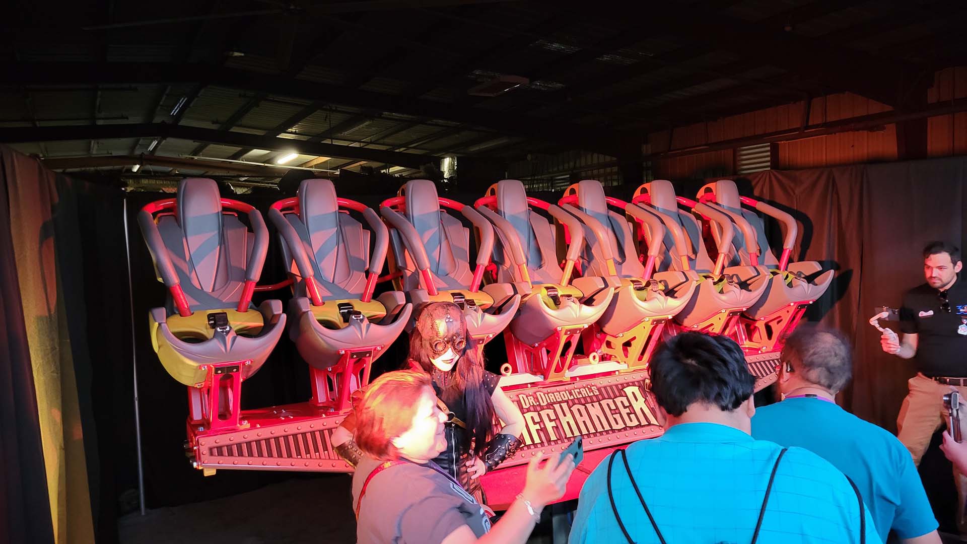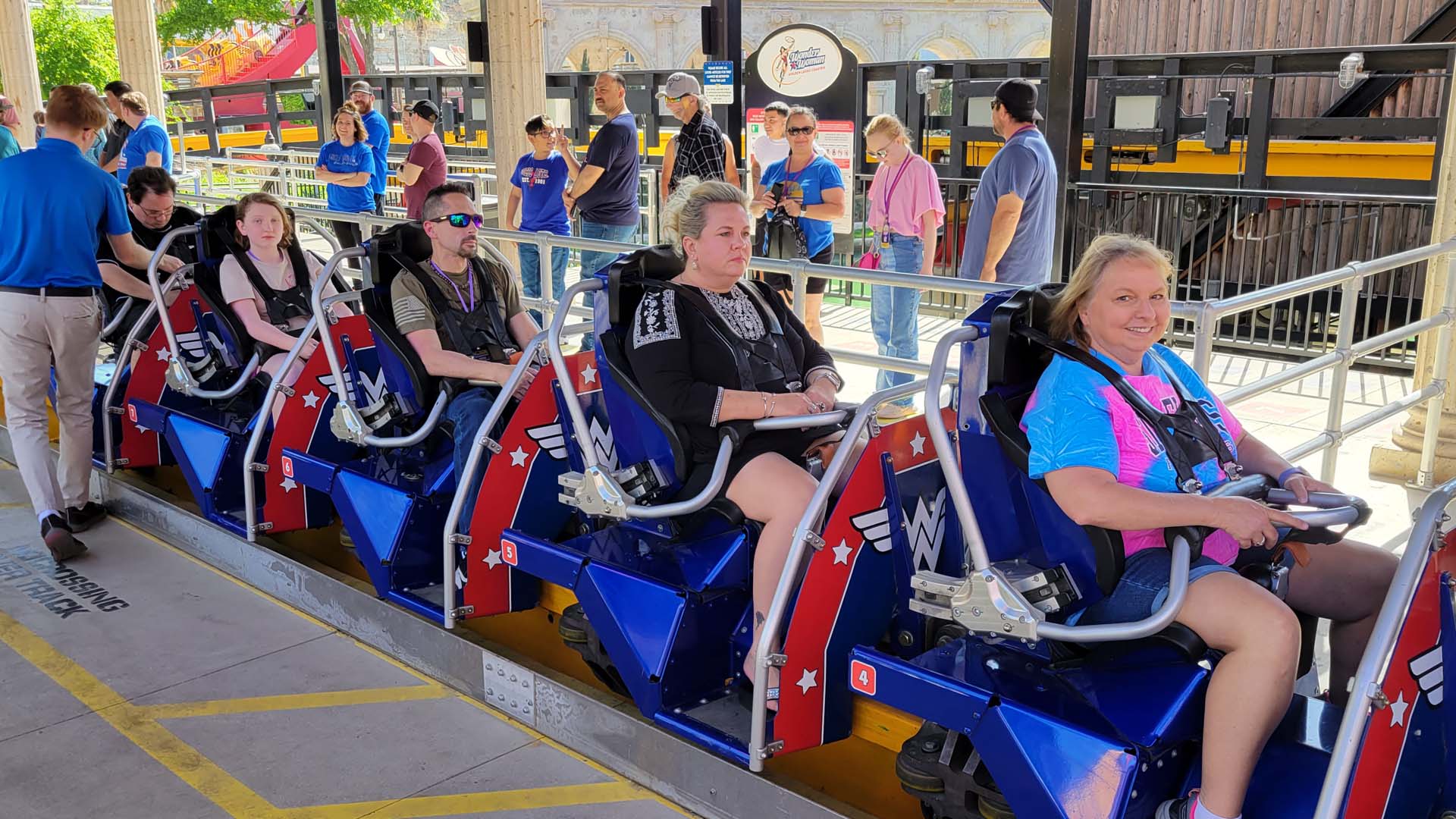 Attendees snagged first rides of the day on Wonder Woman Golden Lasso Coaster before the public arrived.
