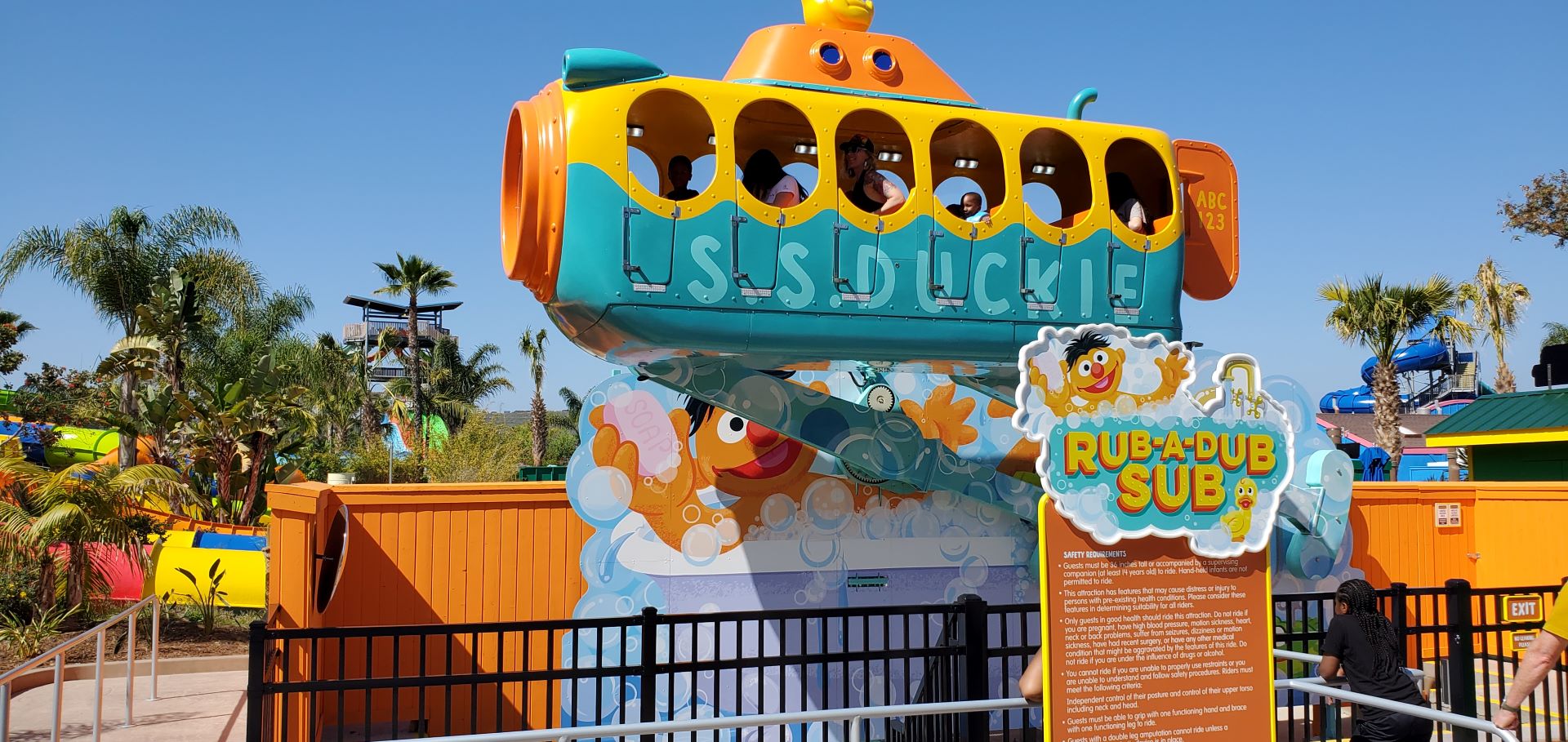 Sesame Place has evolved from the popular water park, Aquatica San Diego. Originally opened in 1997 as Whitewater Canyon, the park was renamed Knott's Soak City U.S.A. from 2000 to 2012. More recently, until 2021, it was named Aquatica San Diego. This is when the transition to the West Coast's first theme park based on the television show “Sesame Street” began. Although Aquatica's waterslides have remained, the refreshed park does seem like an entirely new theme park. In addition to the 10 water attractions, ranging from a lazy river to a mat racing slide to a giant funnel slide themed to Cookie Monster, eight brand new dry rides have been woven into the park with fantastic theming and landscaping. Instead of being in a completely separate area, the waterslides and dry rides are interspersed throughout the park in a unique arrangement in which park visitors can roam from one attraction to the other going back and forth between the two types of attractions as long as proper swimwear is worn for one and street clothes are worn for the other. This varies a little from the original Sesame Place in eastern Pennsylvania, where its water attractions occupy most of the back end of the park.