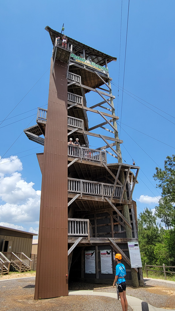 The waterpark consists of several attractions, including a dozen slides, a huge activity structure, a wave pool and a lazy river. But there is much more to do than just water attractions. In addition to the waterpark, attendees were able to enjoy ropes courses, ziplines, a petting zoo, a maze, gator interactions, axe throwing, archery, an inflatable waterpark on a lake and more.
