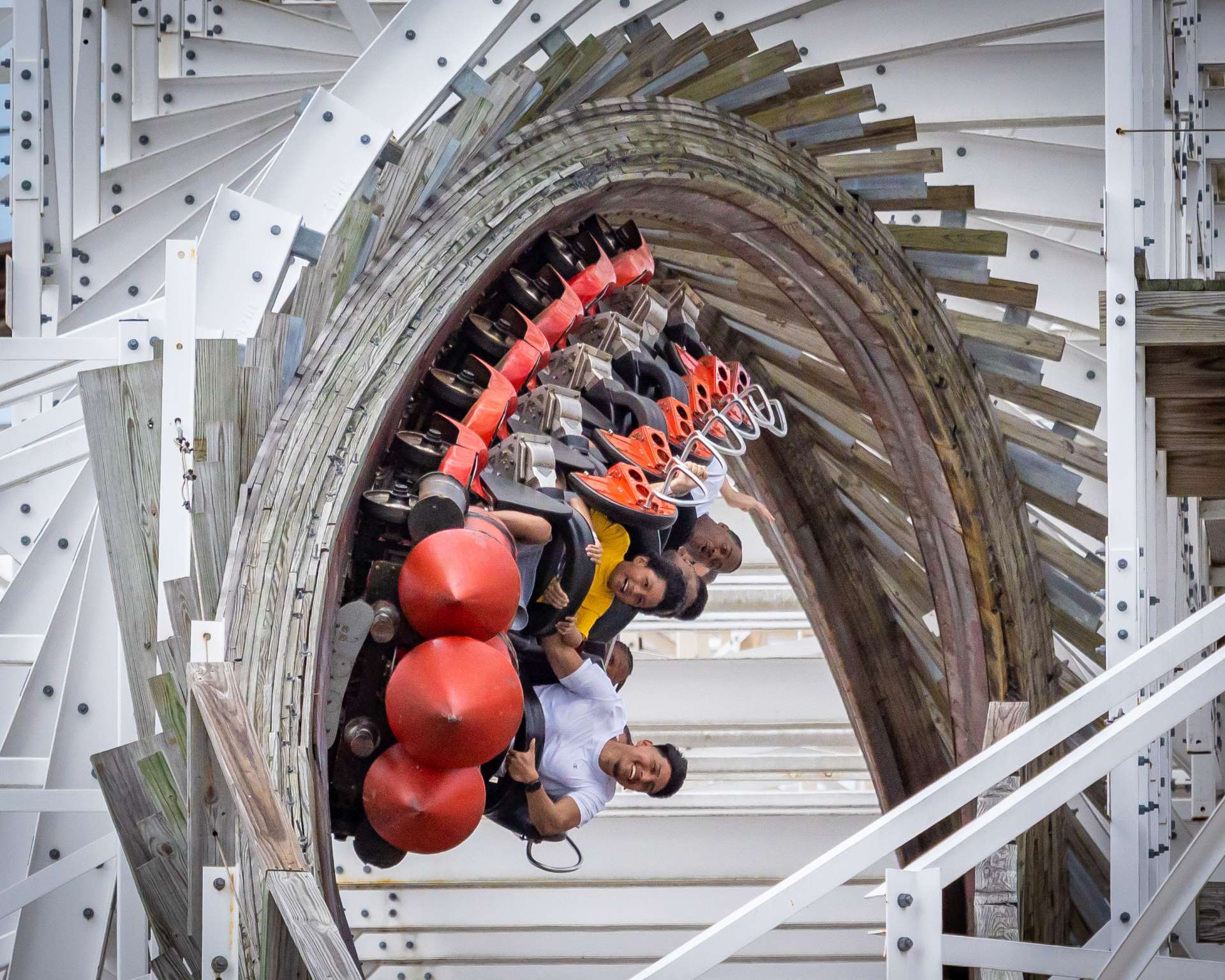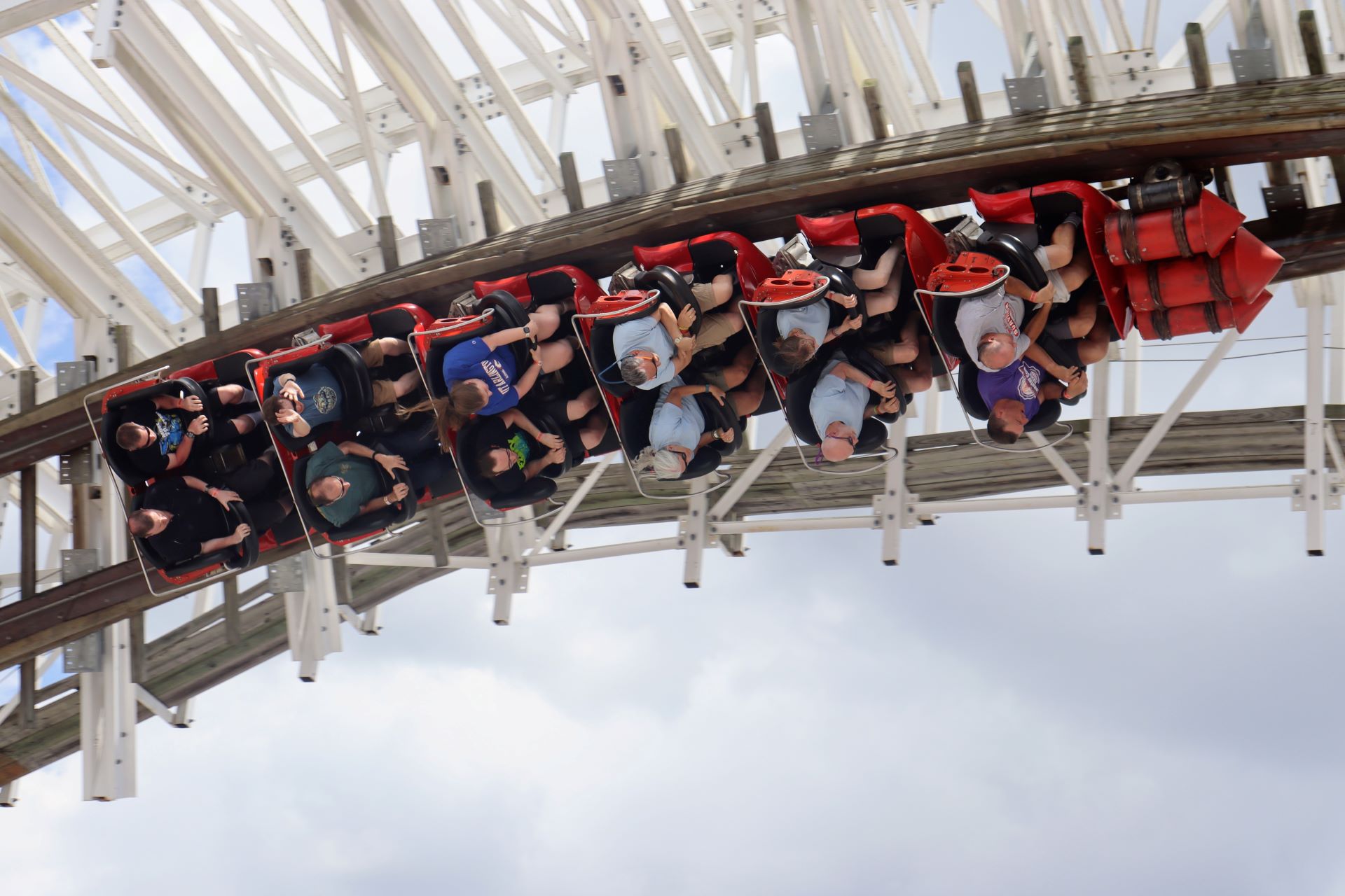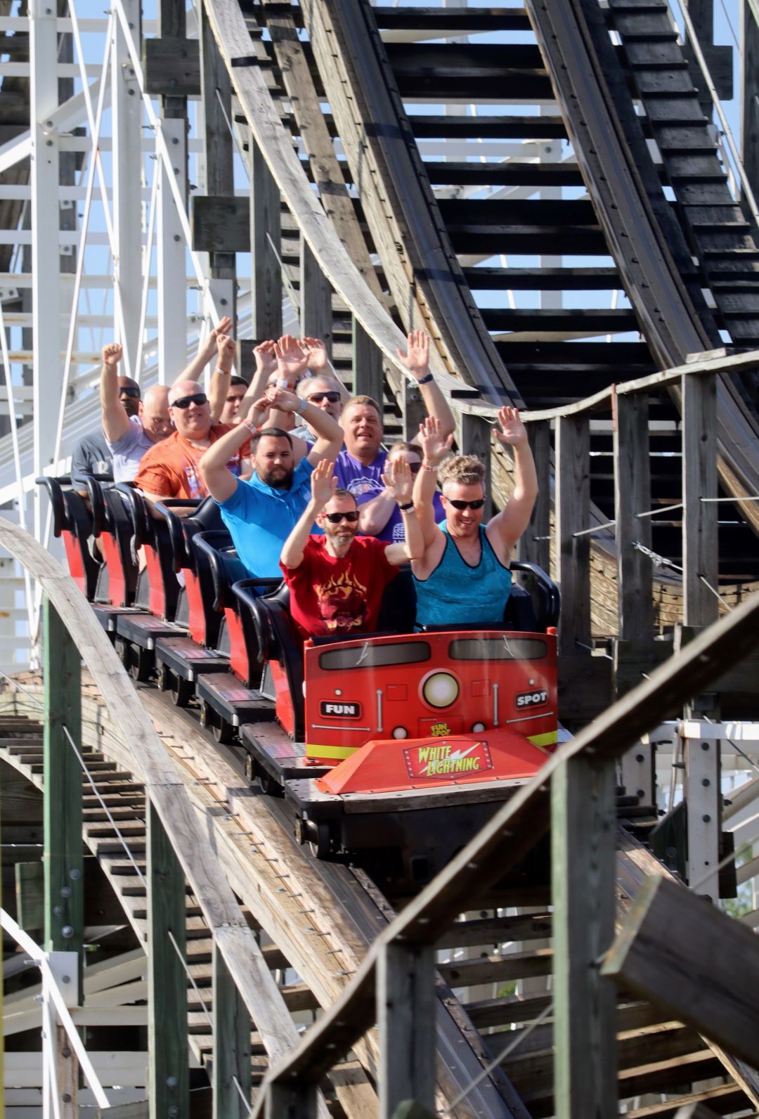 For the first hour, attendees enjoyed four exclusive rides. White Lightning is a rare wooden roller coaster for the state of Florida, built by Great Coasters International Inc. The ride stands 70 feet tall, hits speeds of 44 mph and includes a 90-degree banked turn on the turn-around. Freedom Flyer is a Vekoma family suspended roller coaster that opened in 2013. The other two attractions that operated during the first ERT were Liberty Swing, a spinning swing ride standing at 90 feet tall with the option to ride either while sitting or lying down in a flying position, and Hot Seat, a fast-paced swinging ride during which riders sit back-to-back and enjoy some thrilling airtime.
