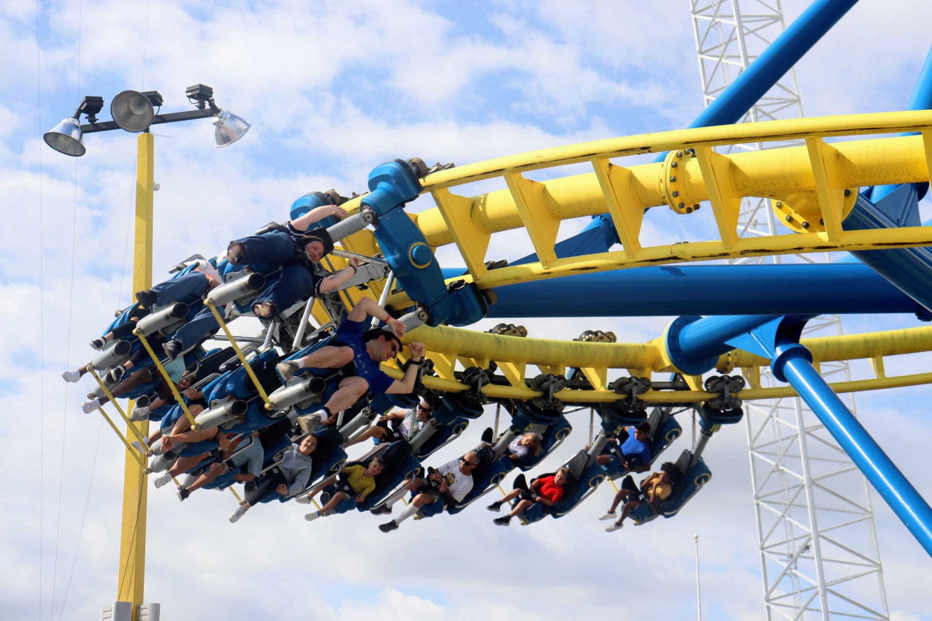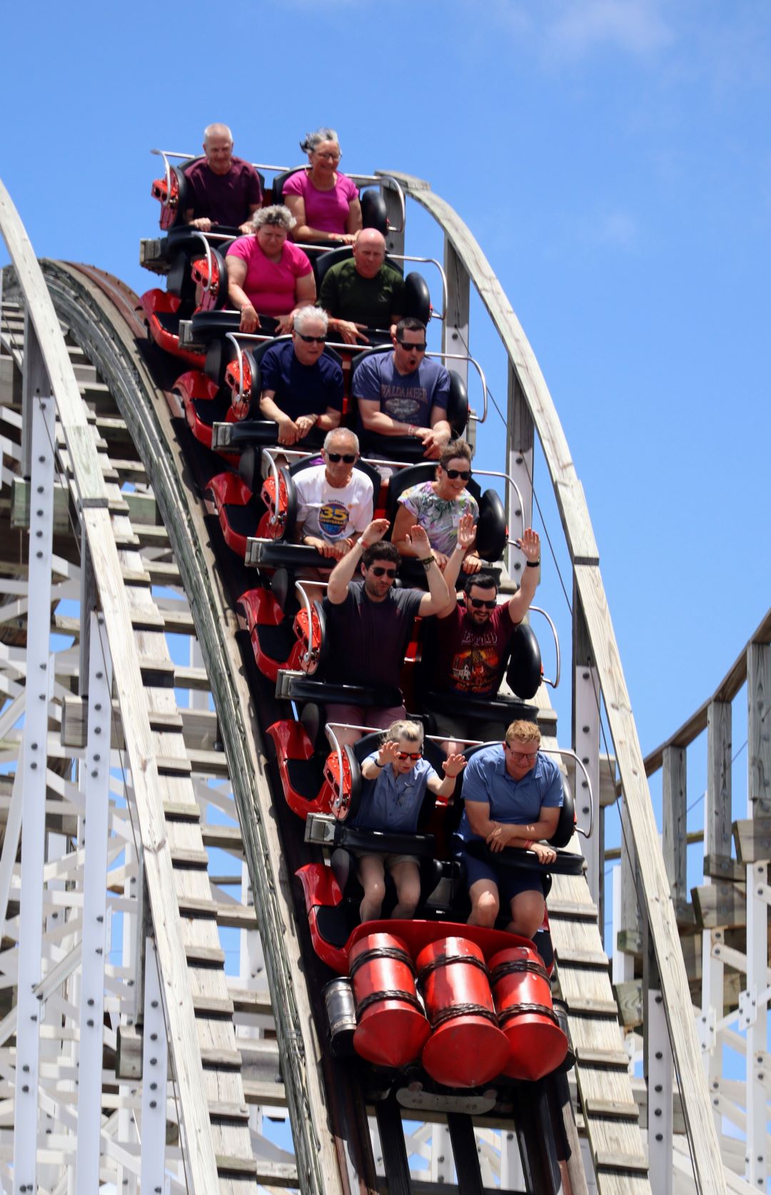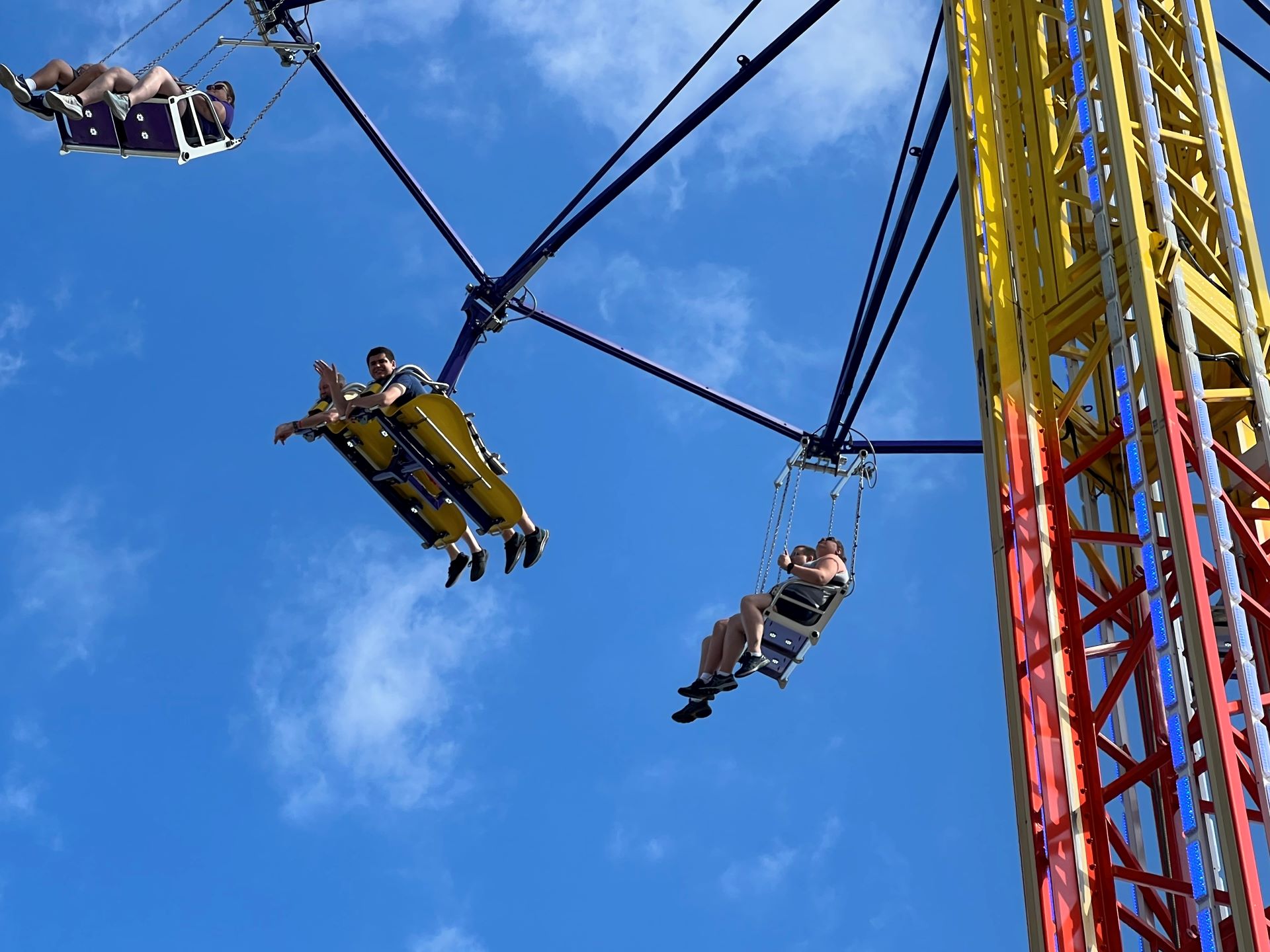 For the first hour, attendees enjoyed four exclusive rides. White Lightning is a rare wooden roller coaster for the state of Florida, built by Great Coasters International Inc. The ride stands 70 feet tall, hits speeds of 44 mph and includes a 90-degree banked turn on the turn-around. Freedom Flyer is a Vekoma family suspended roller coaster that opened in 2013. The other two attractions that operated during the first ERT were Liberty Swing, a spinning swing ride standing at 90 feet tall with the option to ride either while sitting or lying down in a flying position, and Hot Seat, a fast-paced swinging ride during which riders sit back-to-back and enjoy some thrilling airtime.