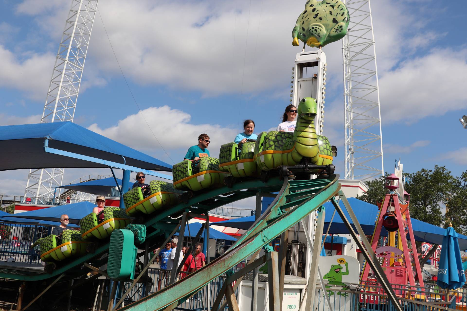 The second hour of ERT started at 10 a.m. White Lightning and Freedom Flyer stayed open for this extra hour. The second session also included Sea Serpent, an E&F Miler Industries oval kiddie coaster, and the Commander Go-Kart Track, a multilevel racetrack that takes riders up 45 feet. In addition to the two hours of ERT, Fun Spot also took advantage of the rides being open to film for a promotional commercial. Several ACE members were filmed as background extras throughout the park and on attractions during their time at the Orlando location.