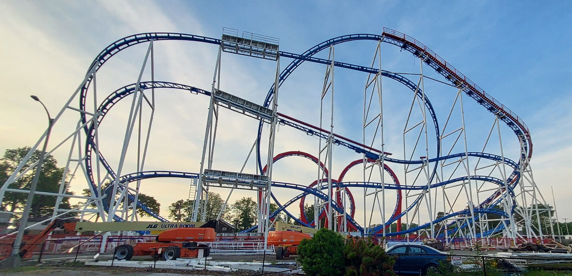 While no official word has been given on the arrival of new trains, the structure appears complete, and the red, white and blue paint scheme has draped the ride in American colors. Standing at 108 feet tall (the park’s tallest), American Dreier Looping was first seen on the fair circuit in Germany beginning in 1984. Since then, it has had various homes, with Indiana Beach (Monticello) being its most recent. There is no official word on when the Schwarzkopf legend will open or even if it will be during the 2022 season, although the park’s website seems to indicate that it will. In the meantime, Cyclone, a portable fairground-type coaster, has opened on the site of the park’s former Galaxi.