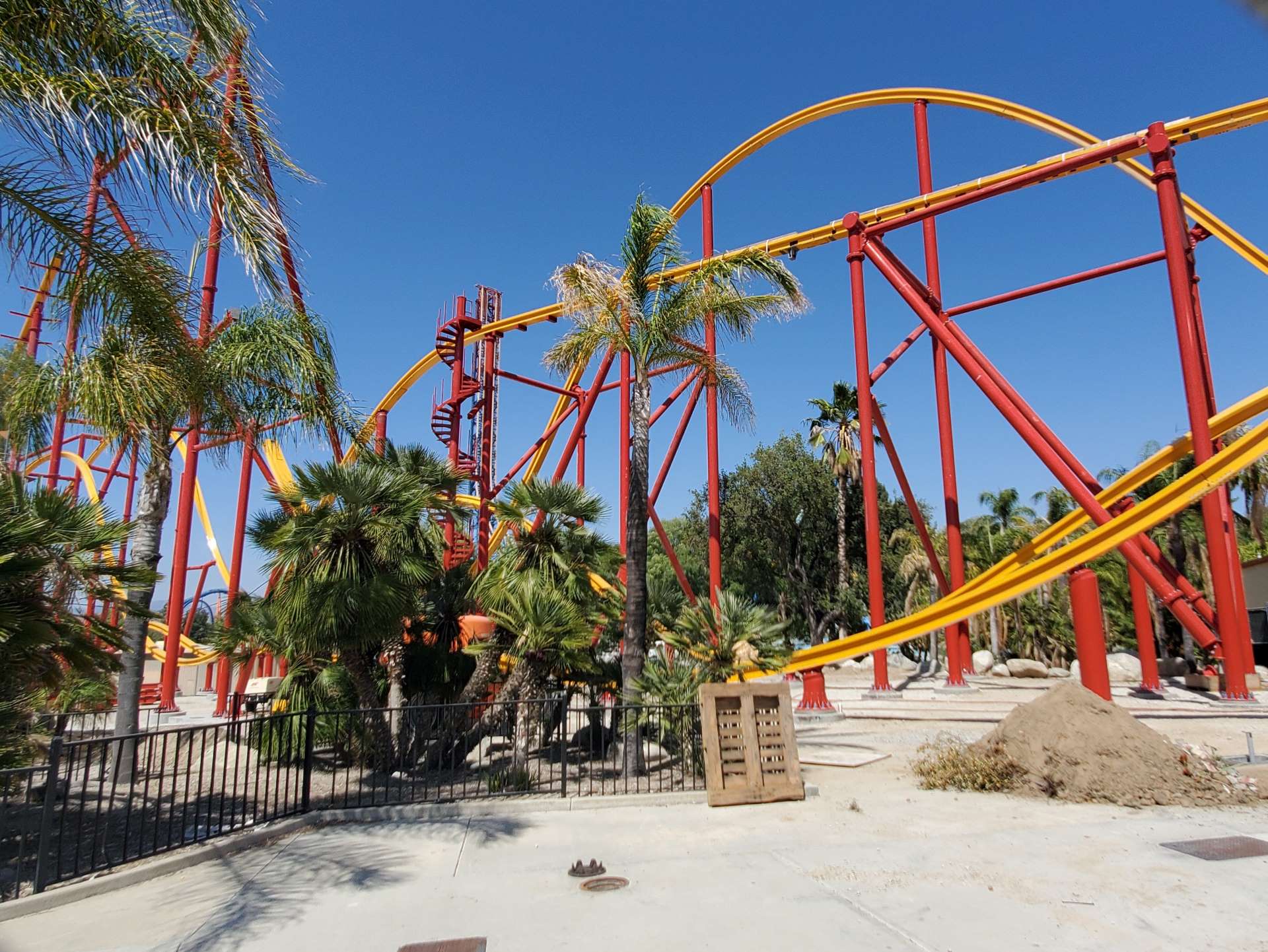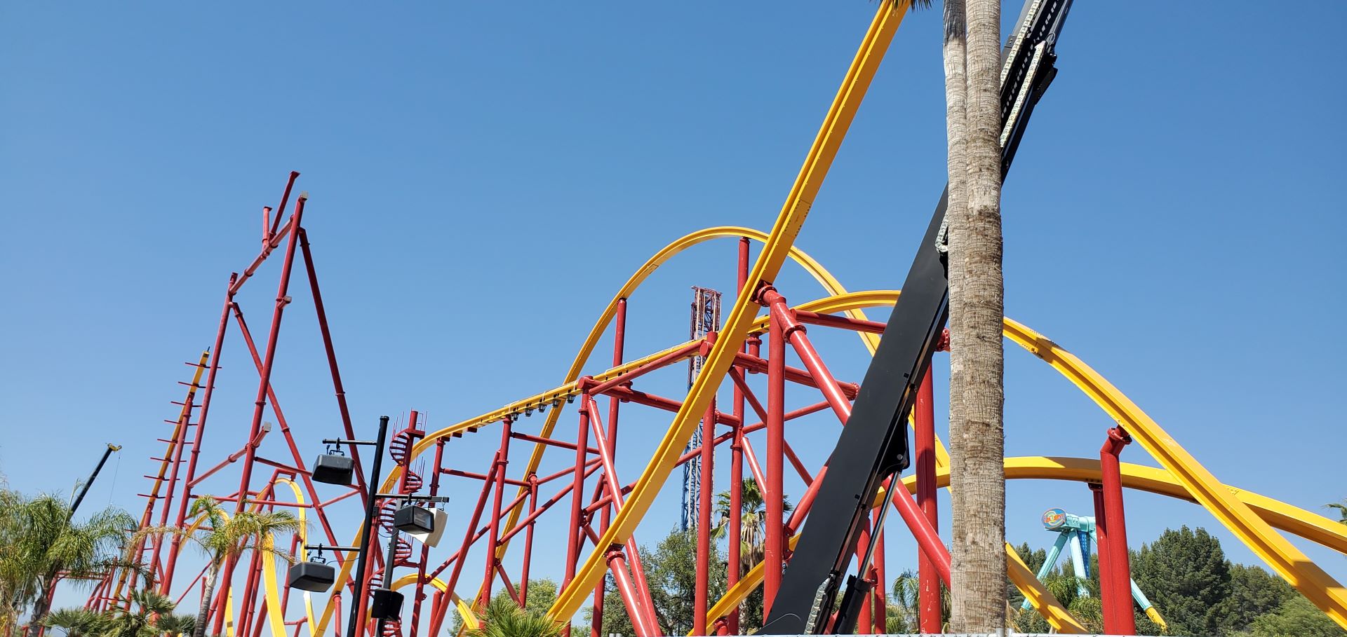 Almost as if with Amazonian speed, Rocky Mountain Construction’s (RMC) newest single-rail coaster is rising into the sky at Six Flags Magic Mountain (Valencia, California). Slightly longer than its counterpart in New Jersey, the colors match the original single-rail coaster at Six Flags Fiesta Texas (San Antonio), Wonder Woman Golden Lasso Coaster.