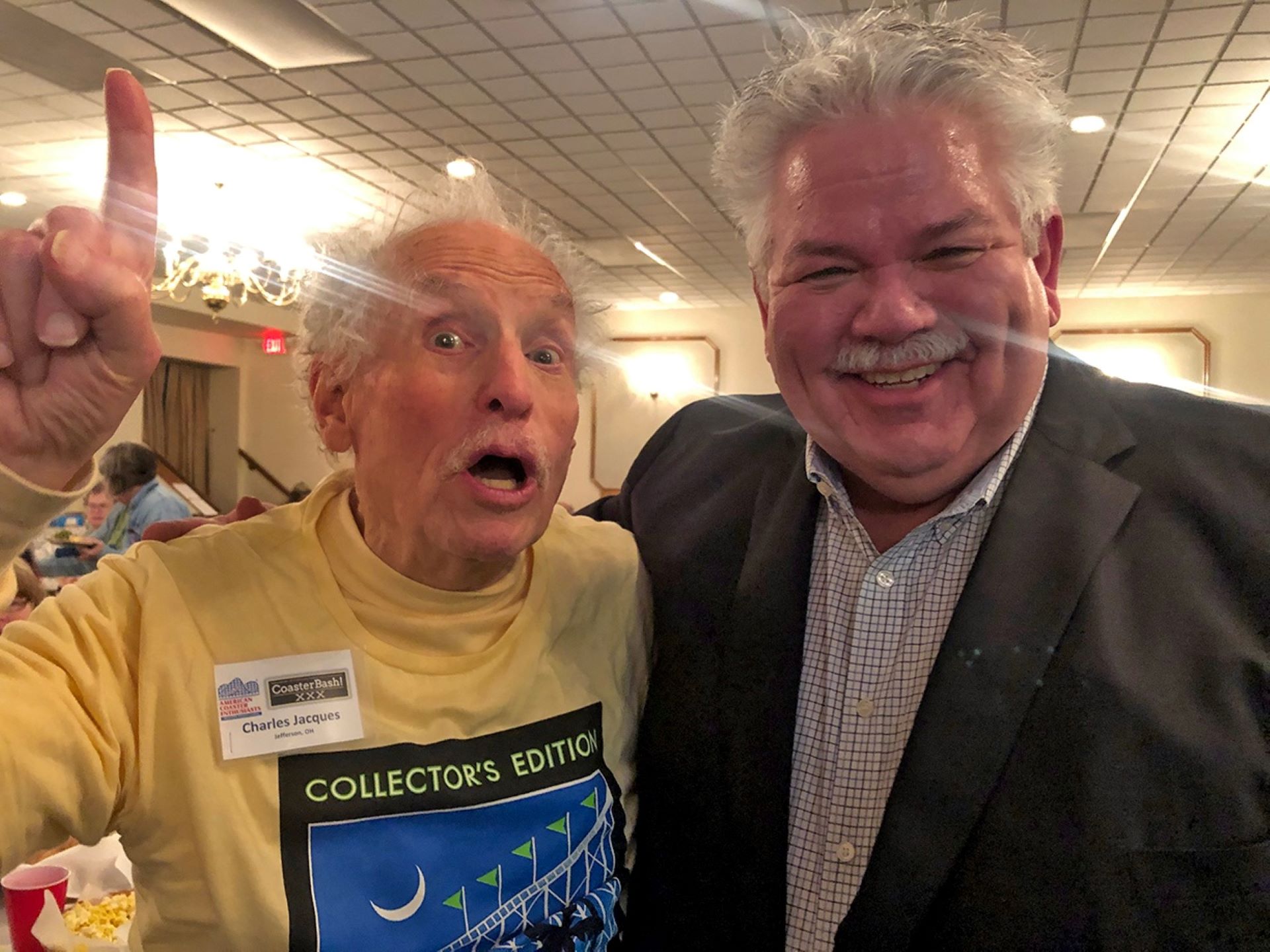 Charles Jacques poses with Rick Sebak at CoasterBash! in 2019.