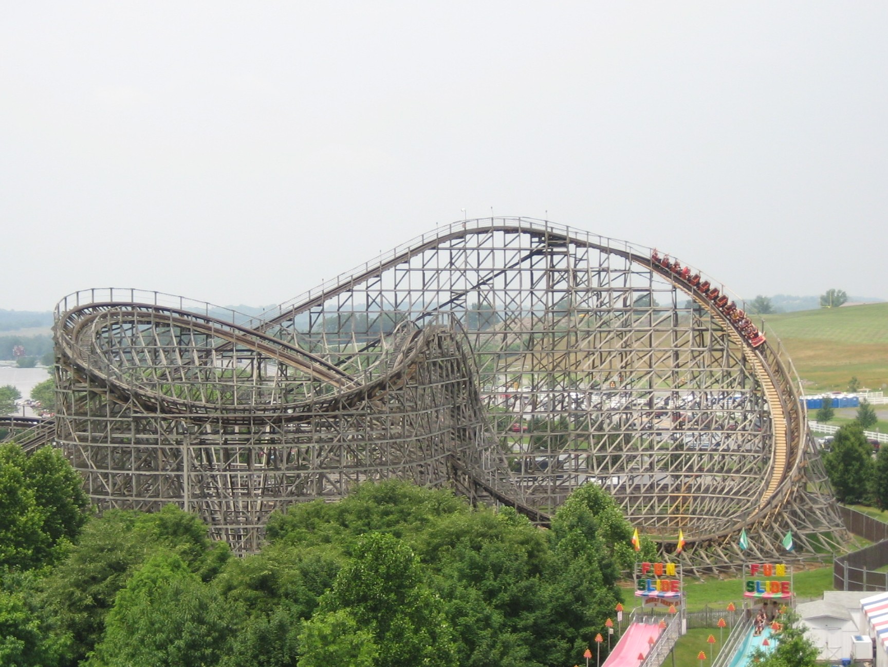 Stats on the ride placed it at 106 feet tall, an impressive height for a company’s first wooden coaster. The first drop was 85 feet, and riders screamed over 3,183 feet of track at 50 mph.