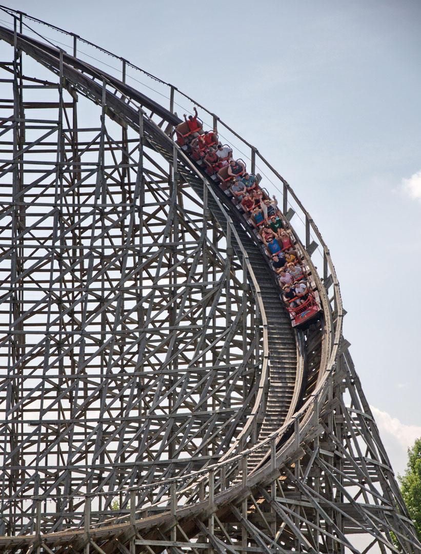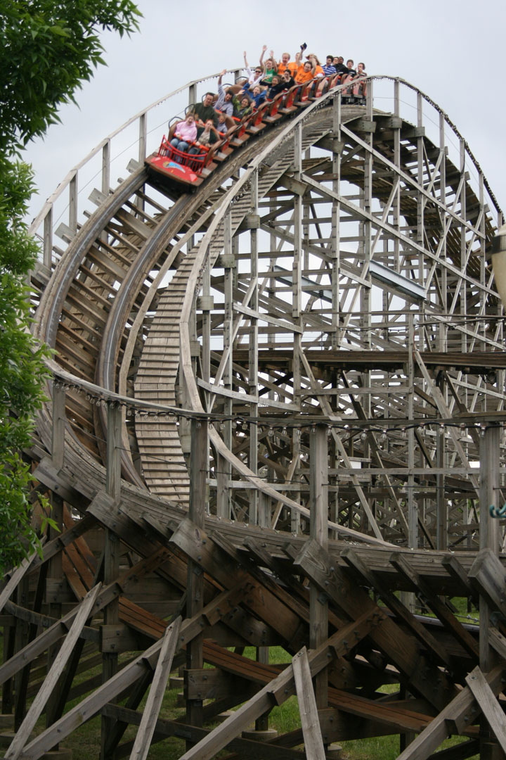 Back in the late 1980s and early 1990s, the Dinn Corporation helped prompt a resurgence in the design and construction of wooden coasters. Offering a great price point, the company built 10 wooden coasters, a few of which remain today. Among them, however, were the towering giants of that era, and a significant number of Dinn coasters have been lost to the wrecking ball.