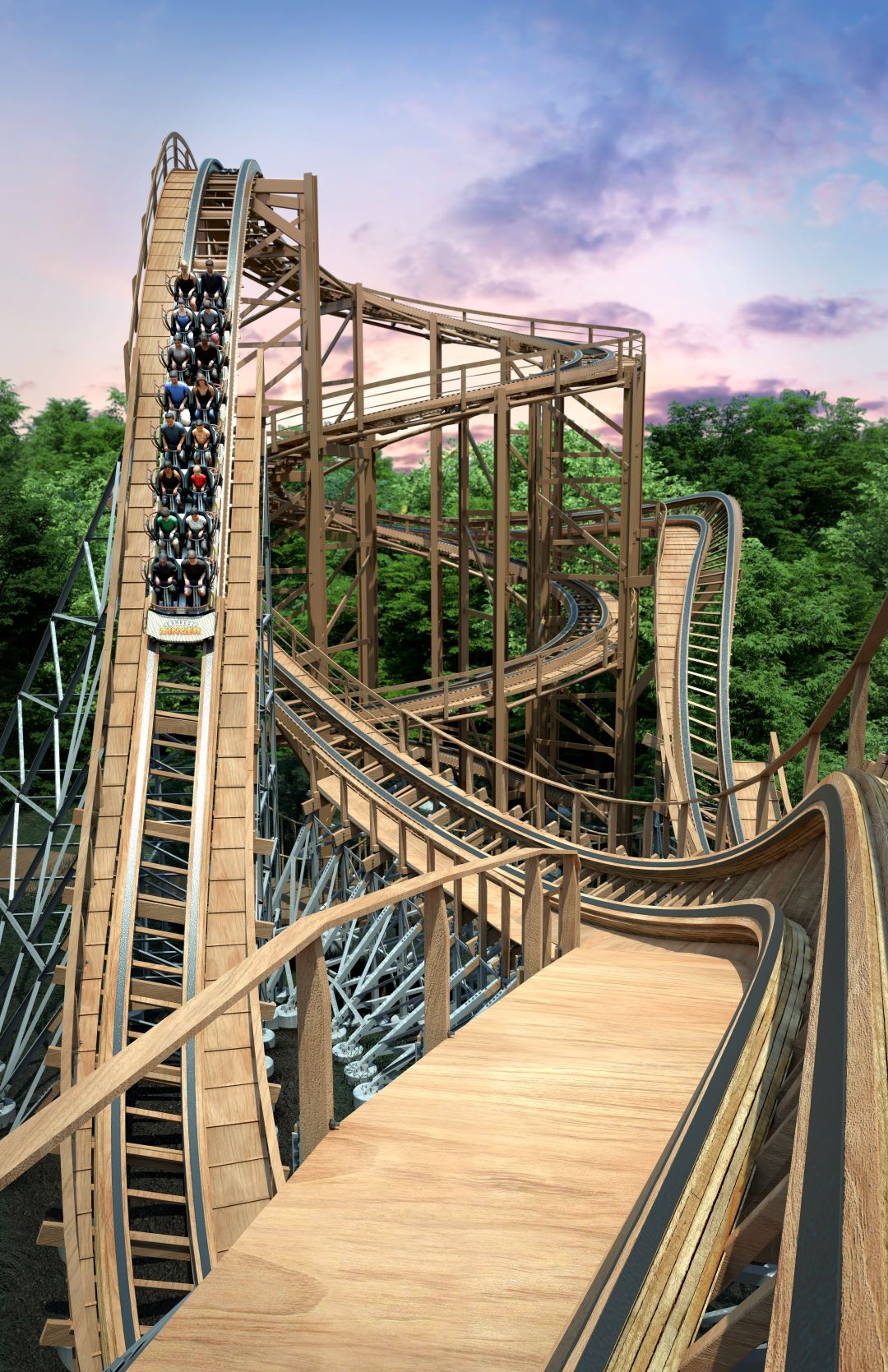 This ride would be a fantastic addition to any park. Its biggest challenge, however, is that it will be located near another GCII wooden coaster, one that is taller, longer and faster — Prowler. How that might affect the opinions of the many guests who come to ride will be something to be observed in 2023. Enthusiasts, on the other hand, will love it, but they will have a perplexing quirk of their own. This is a wooden coaster … but is it? Parts of it will be using GCII’s Titan Track. However, if the animation is any indication, the track will still be primarily wood. The lift and turn around the lift will be steel track. It adds a new wrinkle to the term “hybrid.”