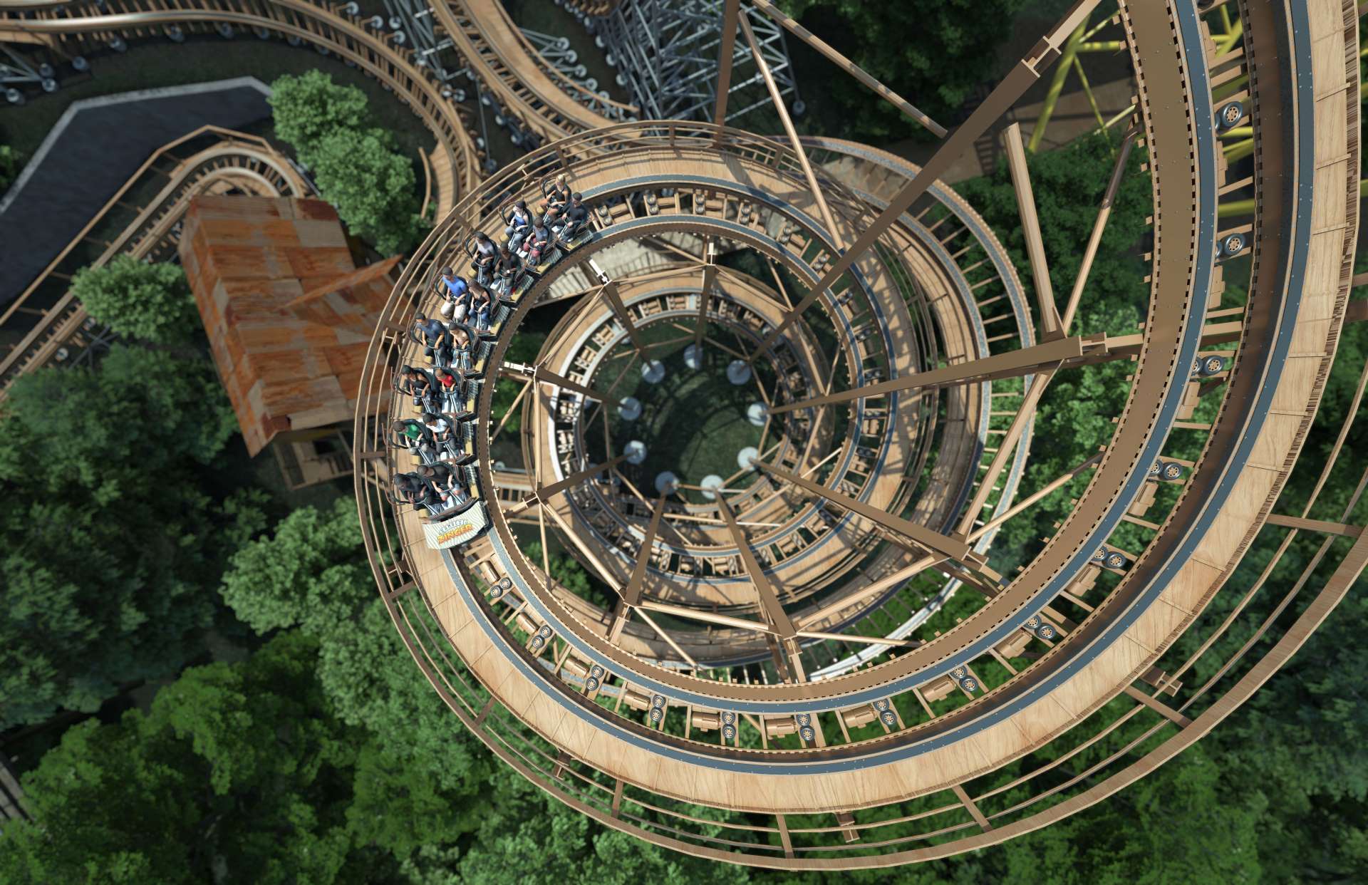 The homage to the steel coaster doesn’t just stop at the name — and the reuse of the original queue — as other attributes from the 1970s installation have a reimagining. Most notably, the iconic spiral lift will make it the first wooden coaster with such an atypical feature. The lift is the biggest tribute to the 1973 ride. A section of the track also wraps around the lift just as the original did. While not shown in the animation, https://www.youtube.com/watch?v=ibg5LMpEbbw, reports are that a tunnel is to be added as one more throwback. Where on the course that happens has yet to be confirmed. It is unlikely to be an underground tunnel as it was on the first Zambezi Zinger.