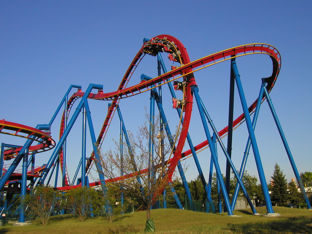 Remember slinky toys? Take one and stretch it out to find an abundance of corkscrews. Corkscrew inversions are drawn out so that riders grasp every angle while being twisted all around. All around the world, coasters are named “Corkscrew” because they feature the world’s first roller coaster inversion!