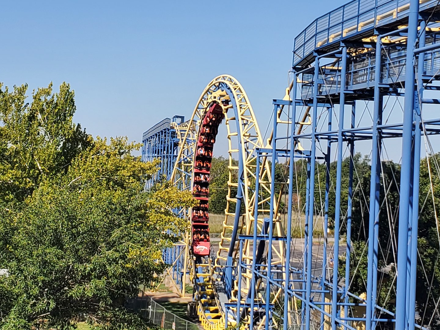 After gathering for a quick group photo, everyone entered the park and made their way to the classic Arrow shuttle coaster, Diamondback, for a morning ERT session. Diamondback, which started its life as Lightnin’ Loops at Six Flags Great Adventure (Jackson, New Jersey), provided early morning thrills to get everyone’s day started. Riders enjoyed the unique experience offered by Arrow’s early design on shuttle coasters aboard a recently refurbished train.