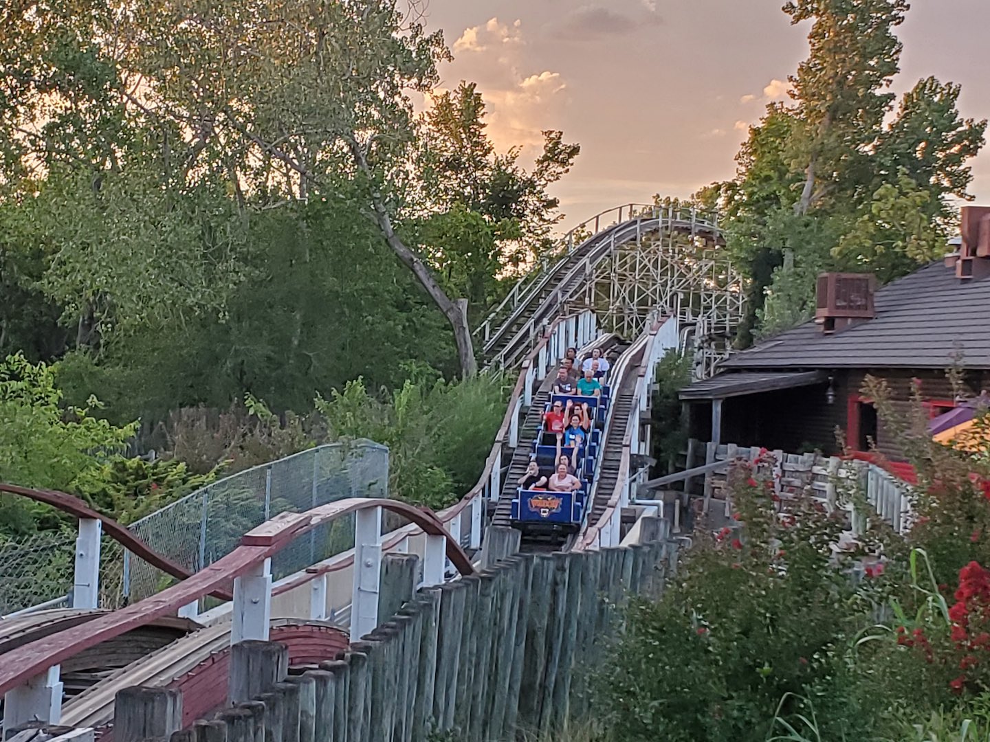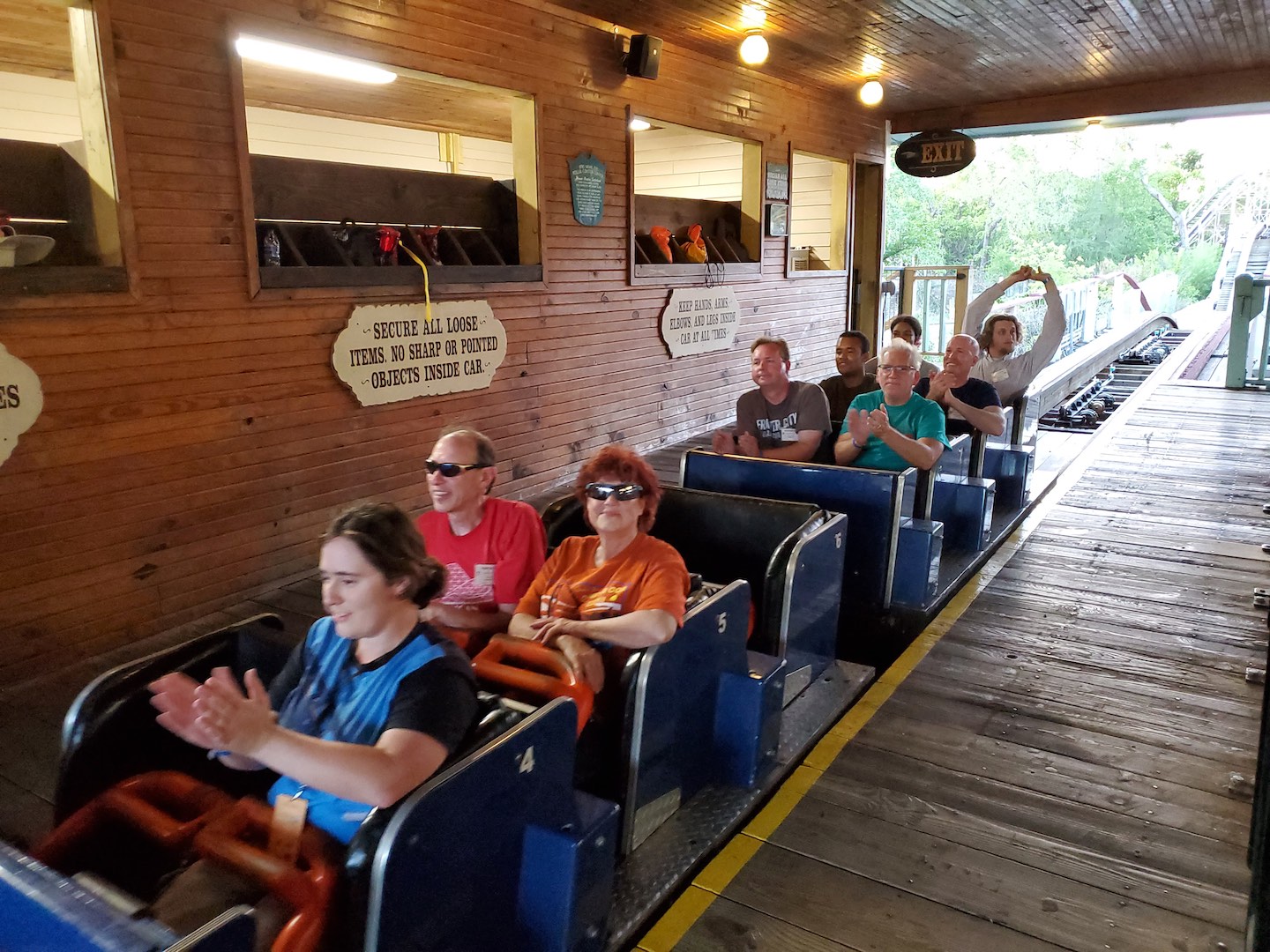 At park closing, attendees gathered at Wildcat for evening ERT. Wildcat, at Frontier City since April 1991, originally operated at Fairyland Park in Kansas City. The National Amusement Device design, although modified from its original, is still enjoyed by coaster lovers and the public today. Members of ACE were influential in helping to secure the relocation of the coaster. While waiting briefly for their evening rides, members were able to enjoy the expansive “History of Roller Coasters” exhibit on display throughout the queue. Too soon, it was time to bid Wildcat and Frontier City goodbye.