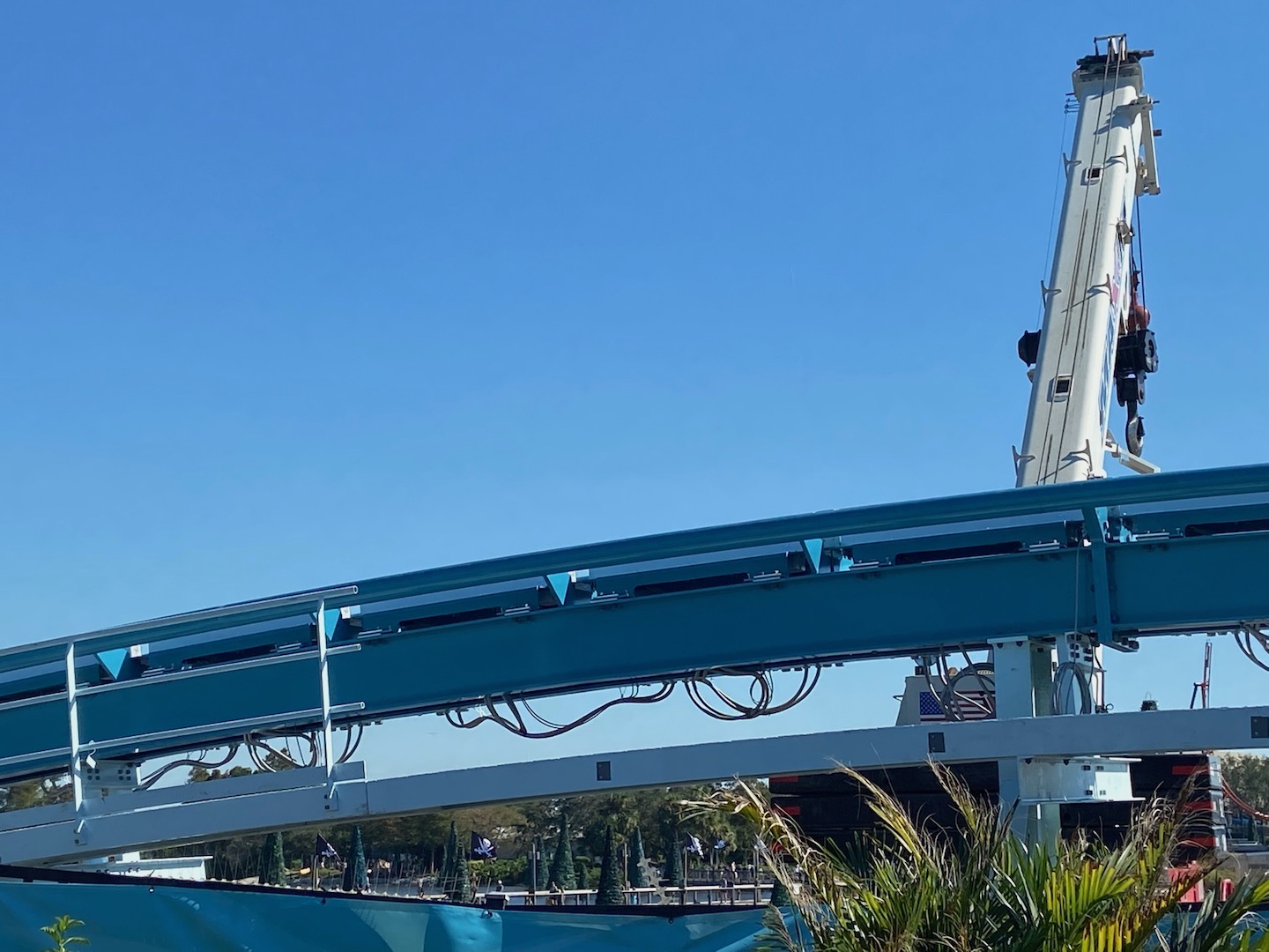 Hurricane Ian postponed the announcement of SeaWorld Orlando’s (Florida) new attraction, but the park has just recently announced the name of the long-anticipated Bolliger & Mabillard “surf coaster.” A full report on this new take on the stand-up genre will appear in the next ACE News post. Pipeline cements the sea life park as the Coaster Capitol of Orlando. As far back as the ACE Spring Conference, site prep had intrigued park visitors (and coaster fans). First pieces of track are being installed.