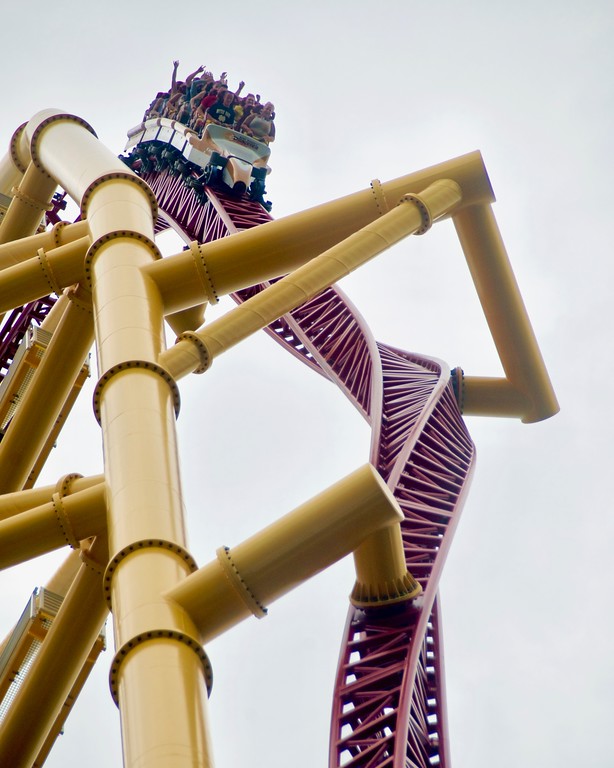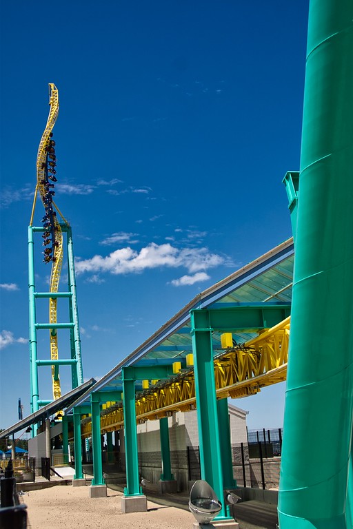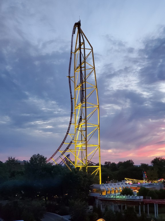 Top Thrill Dragster is an Intamin launched strata coaster, which opened in May 2003 as the world’s first full-circuit coaster to exceed 400 feet. Cedar Point used a 480-foot crane, one of only four in the United States, to erect the structure. Top Thrill Dragster, which stands at 420 feet and reaches 120 mph, spent only two years as the world’s tallest and fastest coaster before Kingda Ka opened at Six Flags Great Adventure in Jackson, New Jersey. In August 2021, a guest standing in line was struck by a piece of a launching train. The ride was immediately closed and remained closed for the rest of 2021 and the entirety of the 2022 season. Cedar Point officially announced in September 2022 that the coaster “as you know it” was being retired and teased a new and reimagined ride experience.