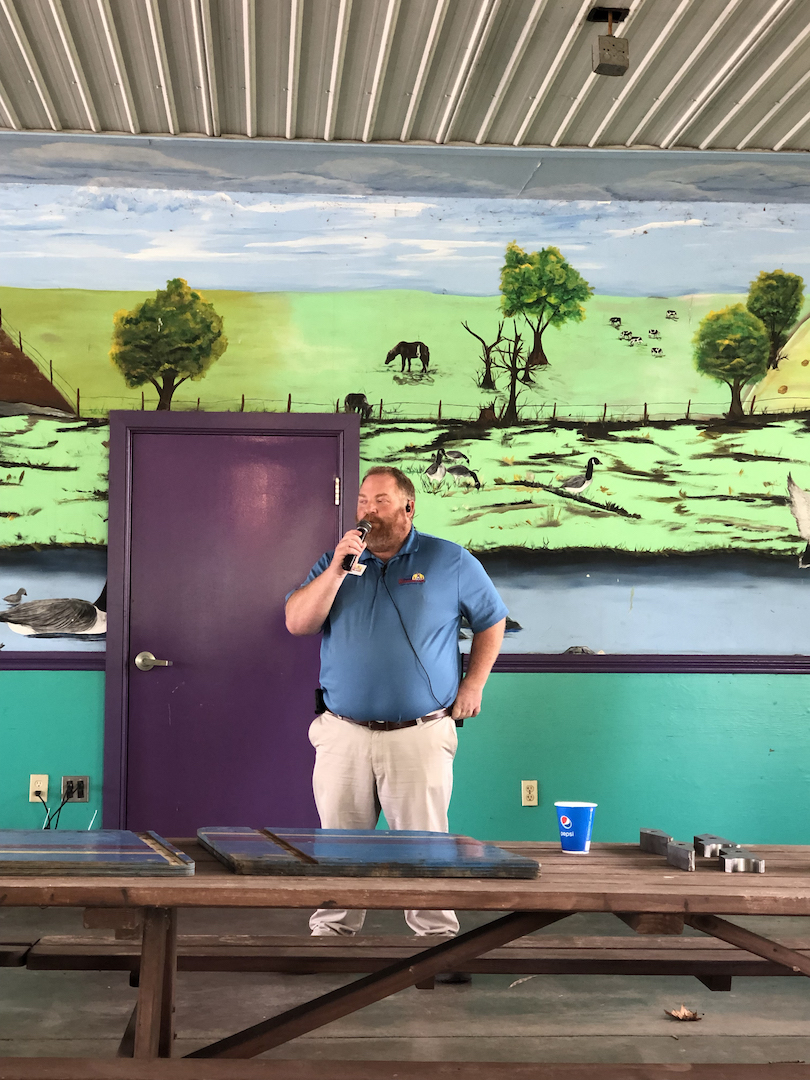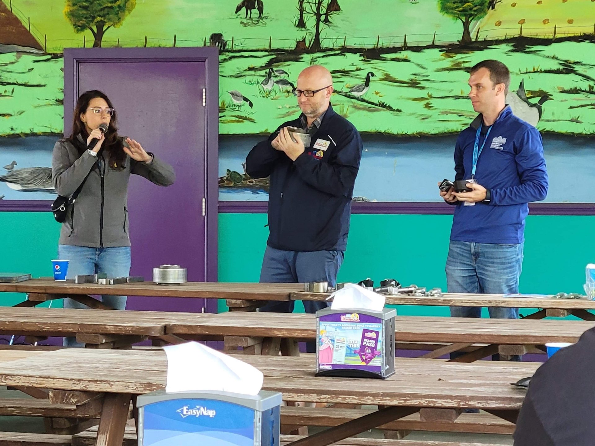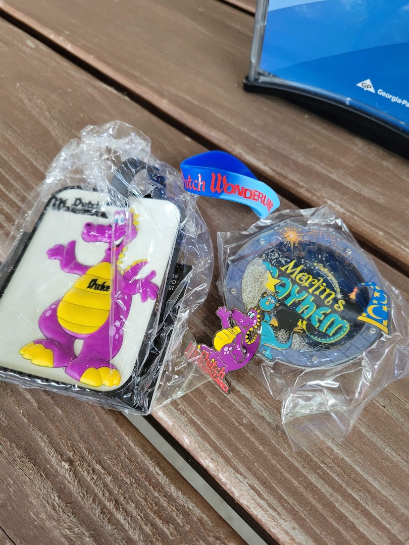 Lunch was served at noon in the Mill Stream Catering area. The park’s catering department treated attendees to an amazing meal that included a mac ‘n cheese bar with crumbled sausage, bacon and pulled pork; corn dog nuggets; sides; and root beer or orange soda floats. The smoked, slow-cooked pulled pork was especially delicious! Eisenberg and James Paulding, Dutch Wonderland’s general manager, welcomed attendees to the park and spoke about the park’s history, entertained a few thoughtfully crafted questions from the crowd and tested the attendees’ knowledge of the park’s history. Winners were able to choose from a large variety of used parts from Kingdom Coaster. Announcements and recognition were made, which included a special welcome to the 16 attendees who were attending their very first ACE event. The park also gave all of the attendees a Duke the Dragon pin, magnet, wristband and luggage tag.