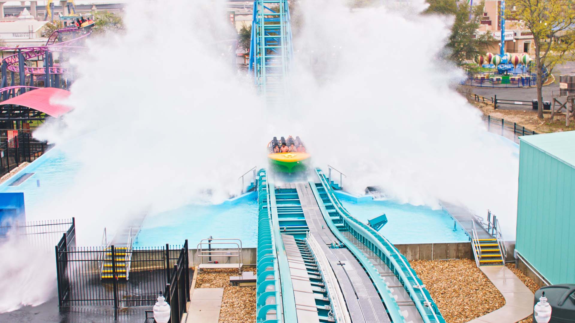 With the turntable added, it is admittedly a snug fit in the park. But its placement right on a main midway makes it a spectator gem. People are mesmerized watching boats speed back and forth up two vertical spikes, and the final splash always elicits responses from onlookers.