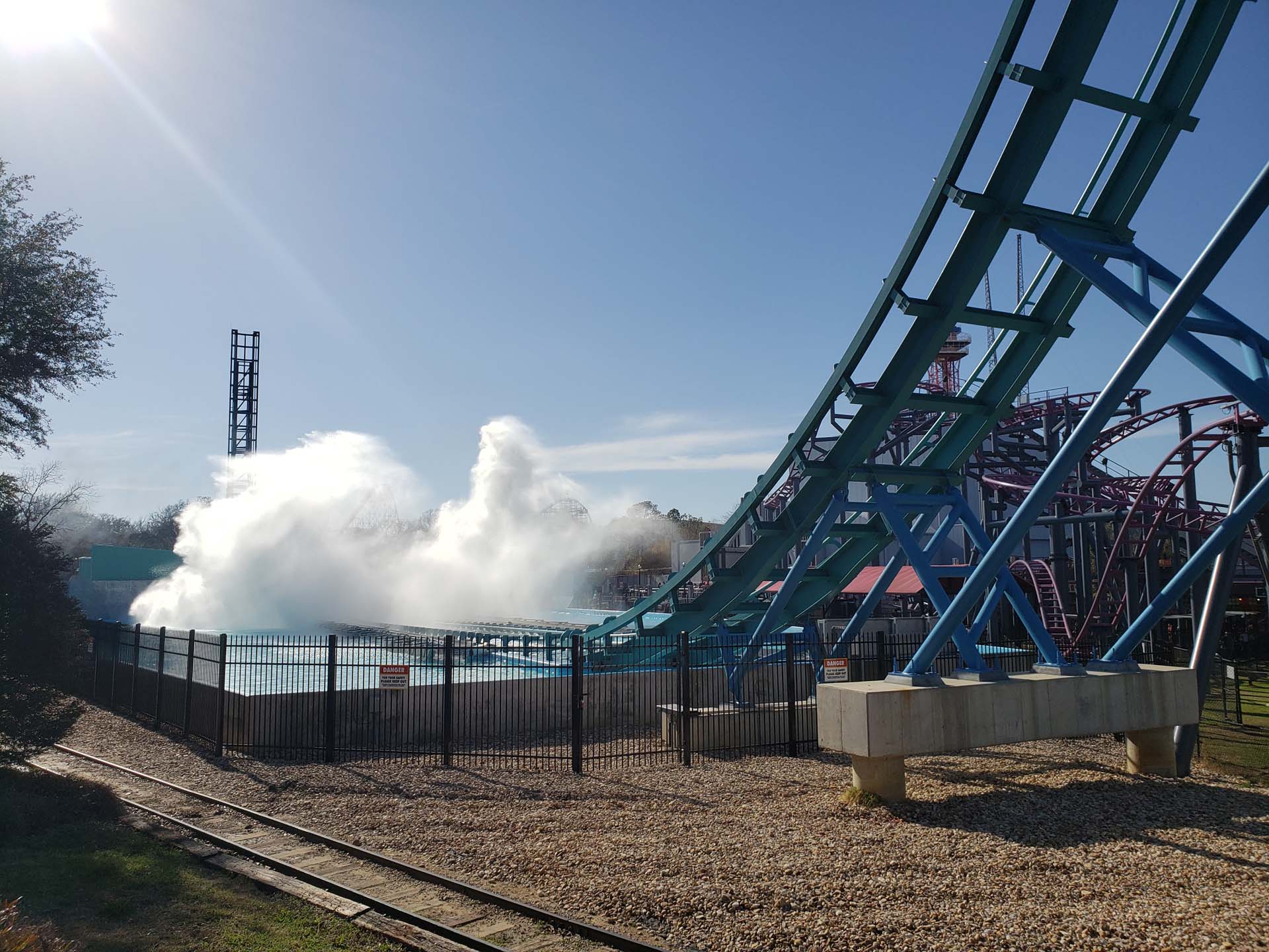 Devoted fans will find past experiences from the park indirectly embedded in the ride. Fans of the old Flashback will enjoy the shuttle experience. Those who remember the old 1987 Splashwater Falls (later Aquaman Splashdown) will see the return of the huge splash. And while the launch and shuttle of Mr. Freeze are still in operation at the park, Aquaman: Power Wave delivers that thrill of traveling up the spike in reverse, allowing guests to stare straight down — and much more comfortably. When the Premier launched coaster was returned to its original forward-launched position last fall, that thrilling aspect was lost. Now it’s back.