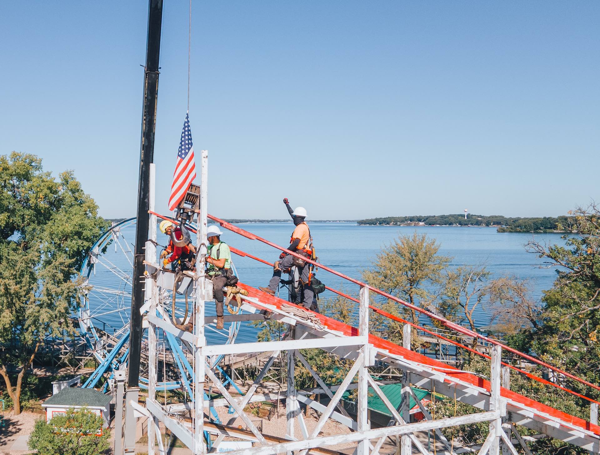 Next, heading to the other side of the state, Arnolds Park (Arnolds Park) is finalizing the reconstruction of its ACE Roller Coaster Landmark, The Legend. After soliciting money from the community and donors, the park raised enough to contract with Great Coasters International to finish this round of a four-year restoration project. The original project started in 2013 and has been moving through phases, making this a labor of love and preservation.