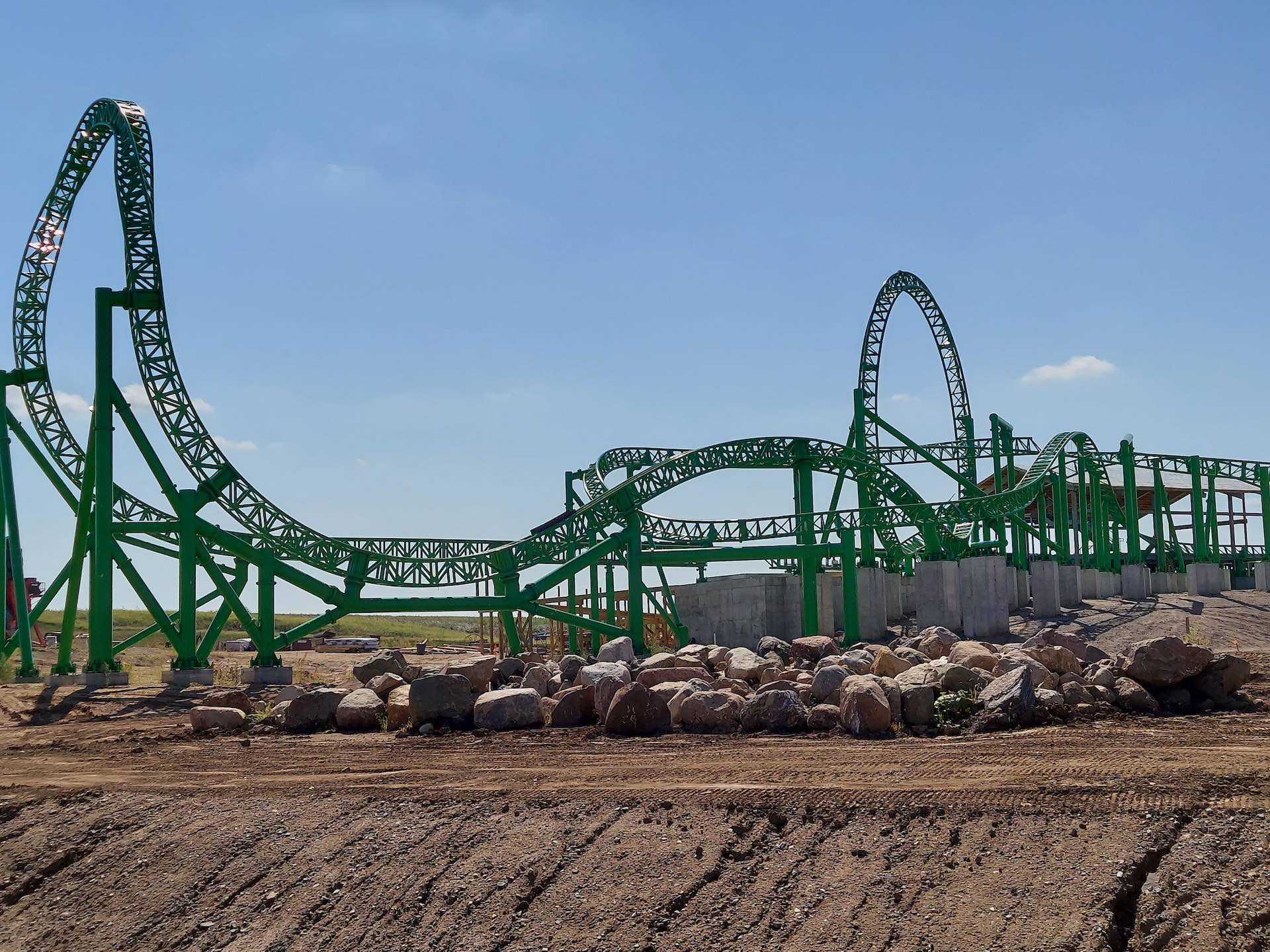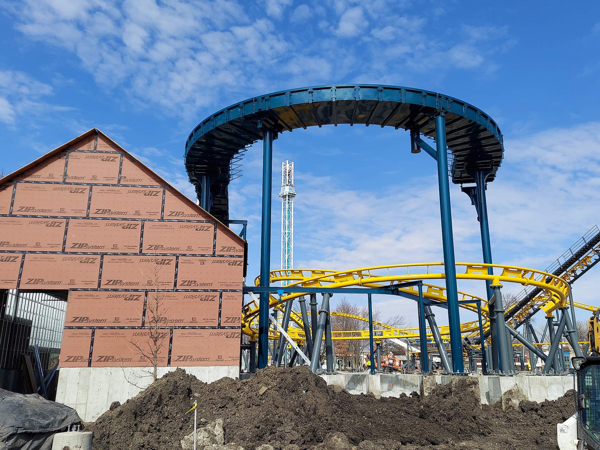 Finally, proceeding to the middle of the state for the biggest project, construction of the duo ride combo Flying Viking (Zamperla junior coaster) and Draken Falls (log flume) at Adventureland (Altoona) is coming along nicely. Draken Falls brings back a reimaged fan favorite ride. The park’s original log flume was popular from 1974 to 2015.