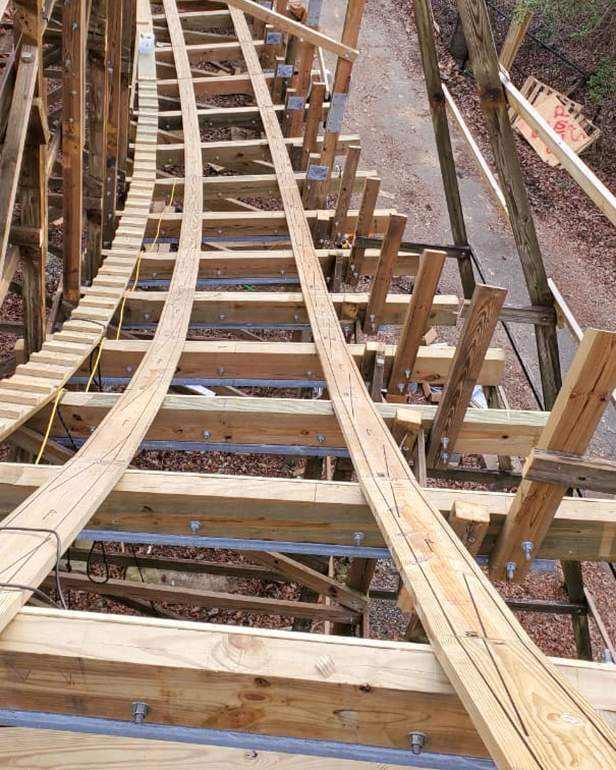Despite this, the park decided that following the coaster’s 40th anniversary in 2022, the time had come to invest in its future. Although wood has continually been replaced on a regular basis, sister property Kings Island’s success with The Gravity Group’s new engineered precut track to improve The Racer and The Beast in recent years led to Kings Dominion’s planning something more substantial than simple, routine offseason maintenance.
