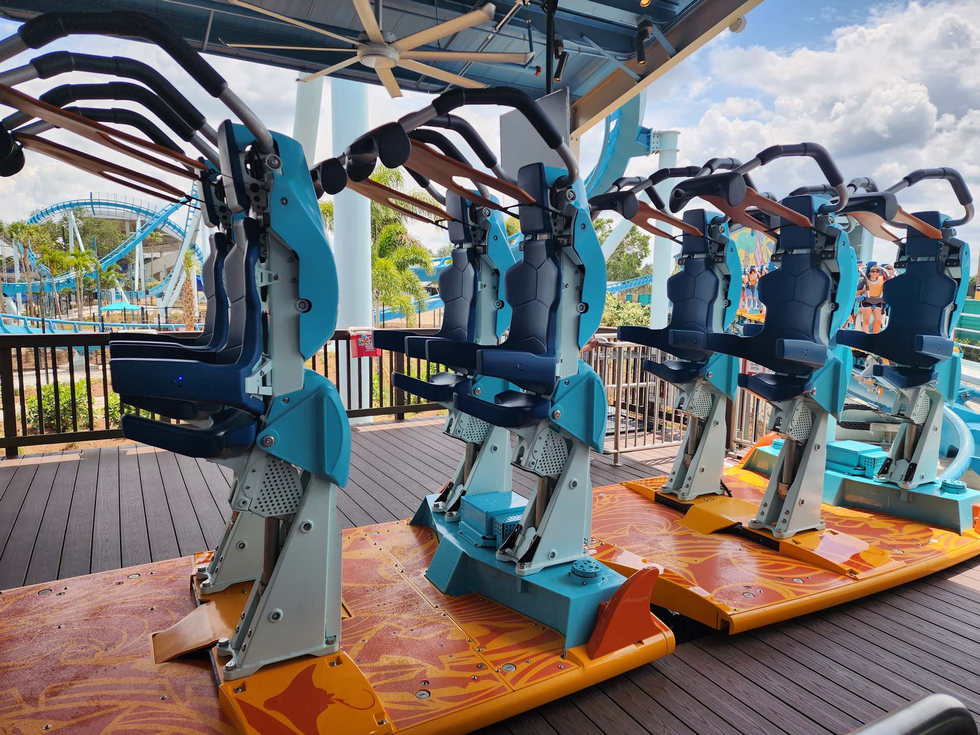 SeaWorld Orlando’s collaboration with Bolliger & Mabillard has resulted in a standup coaster with vehicles differing significantly from the company’s previous efforts, highlighted by soft vest restraints and a clever suspension system beneath each seat.