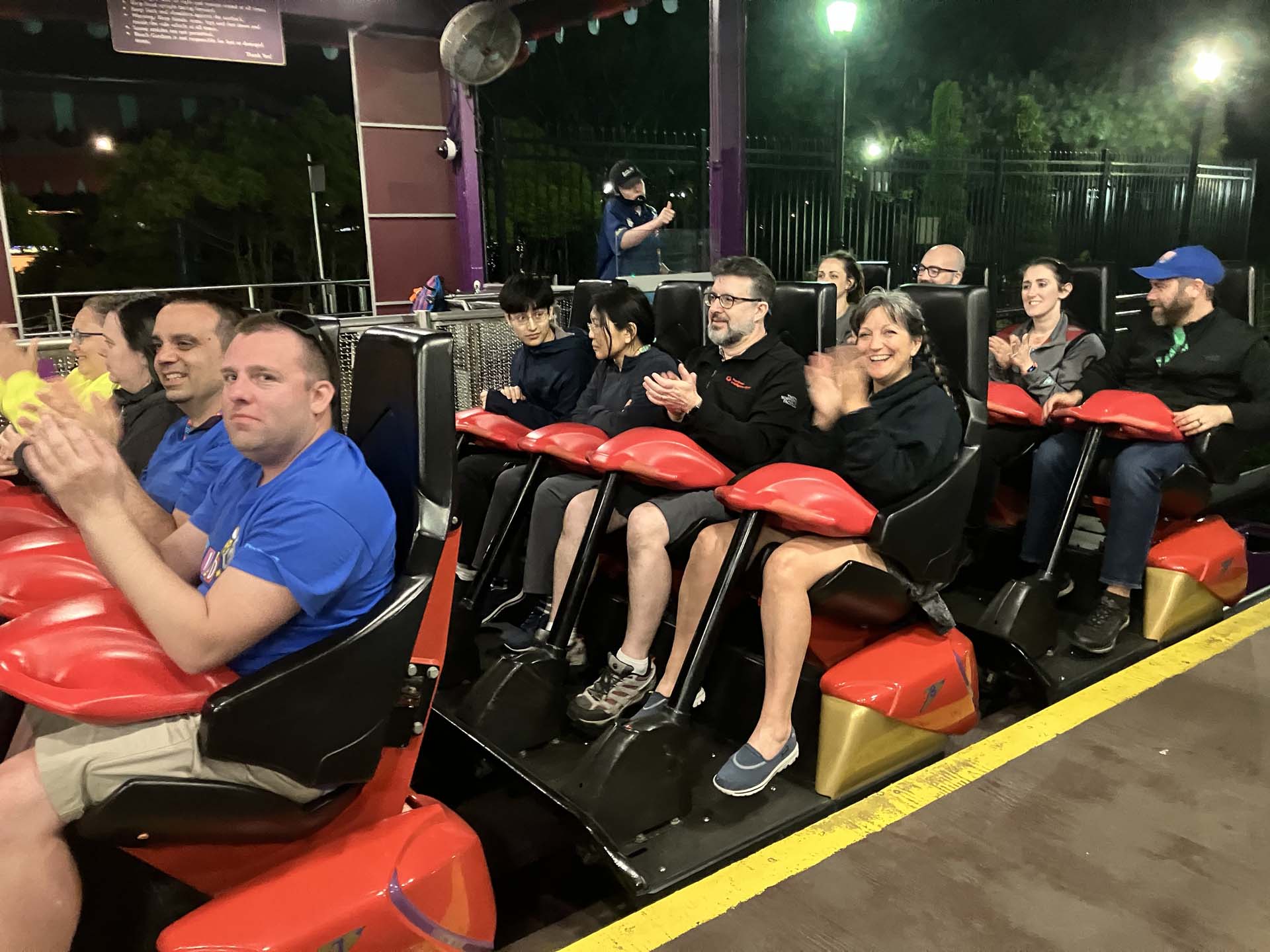 The evening ended with an on-time and fantastic ERT on Pantheon for those with stamina remaining after the long day. The thrilling ride in the cool evening air beckoned repeat rides for many.