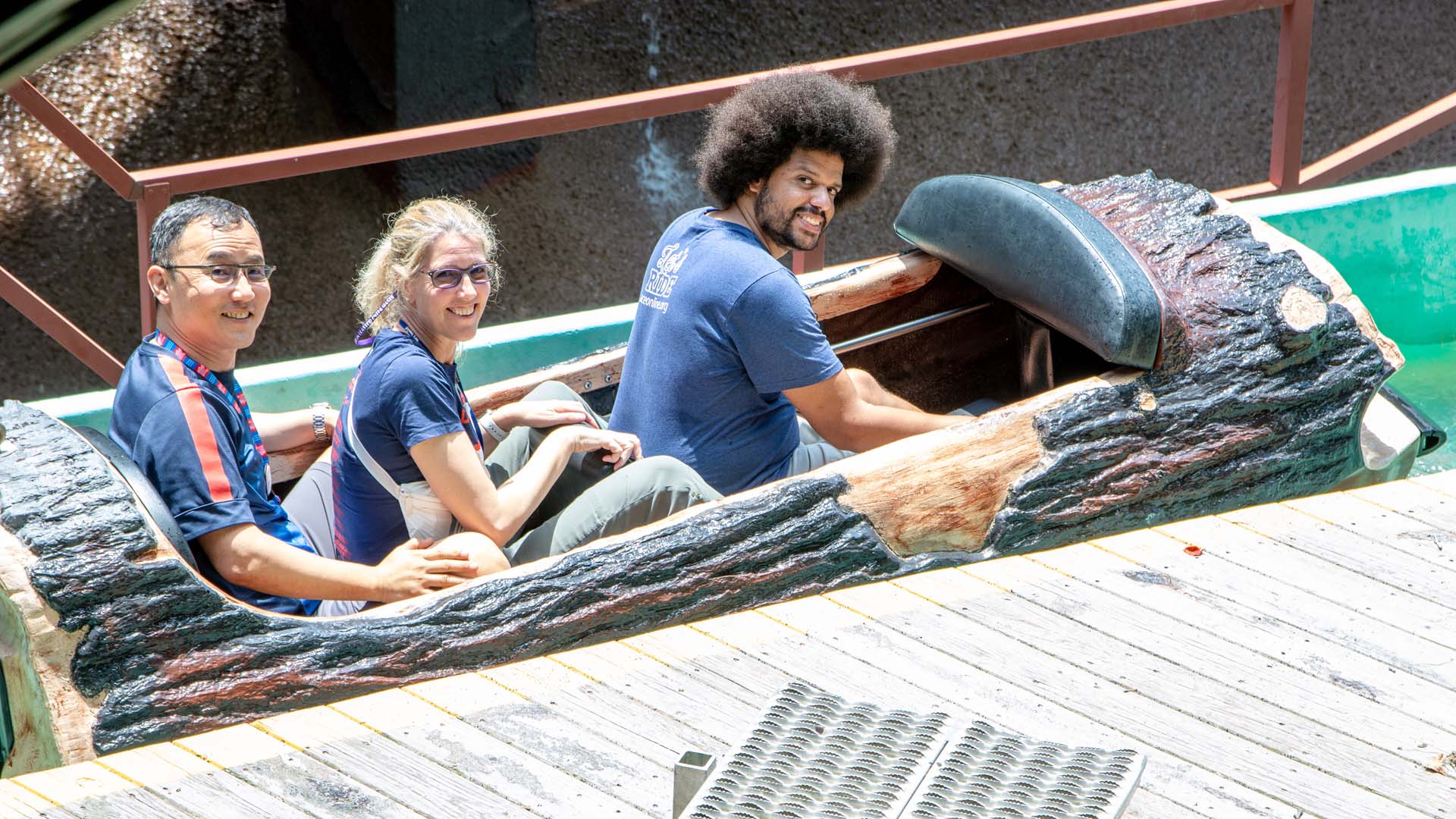In addition to celebrating coasters, a group of attendees met at Le Scoot for an informal takeover of the park’s log flume.