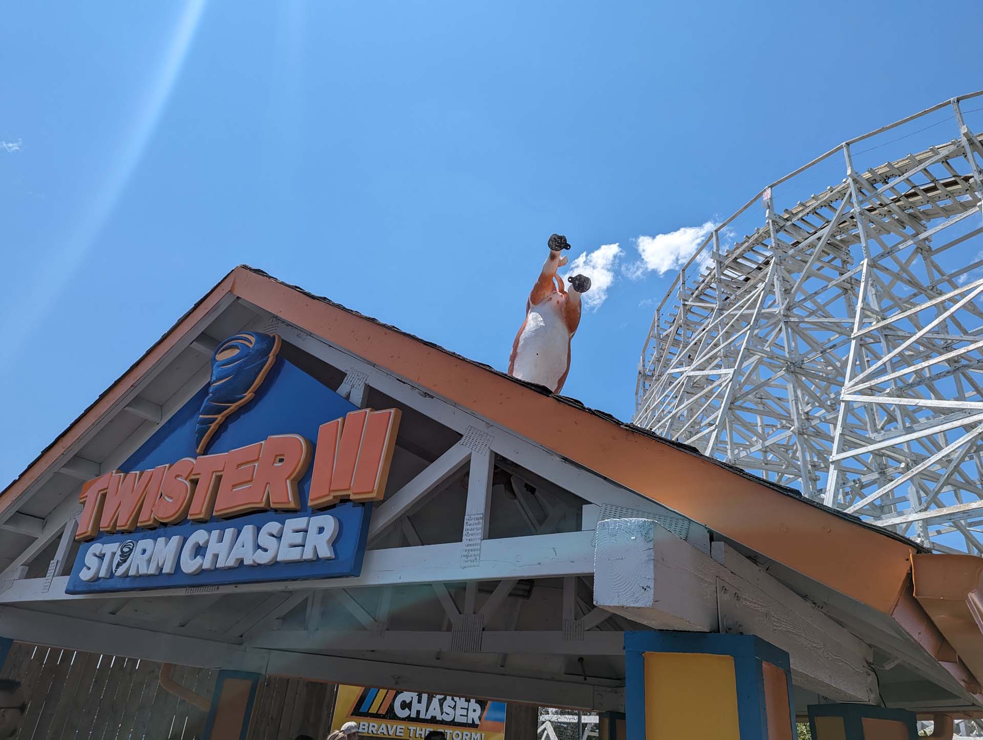 Twister III: Storm Chaser’s improvements include a much more immersive queuing area, supporting the coaster’s new theme.