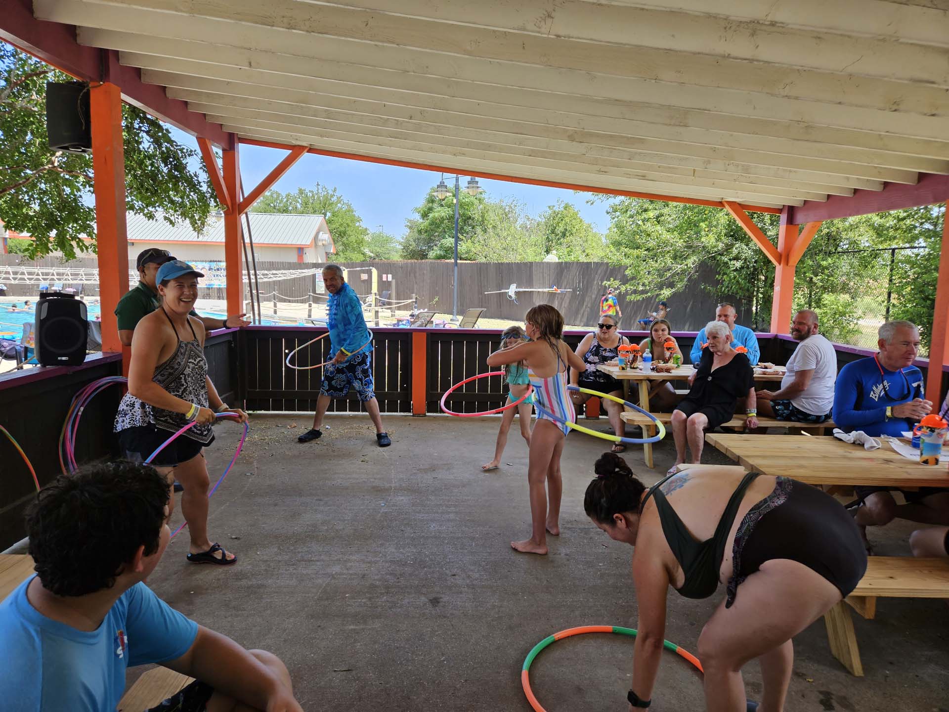 Some ACE members participated in a tug-of-war in the wave pool, while others took part in a hula hoop contest.
