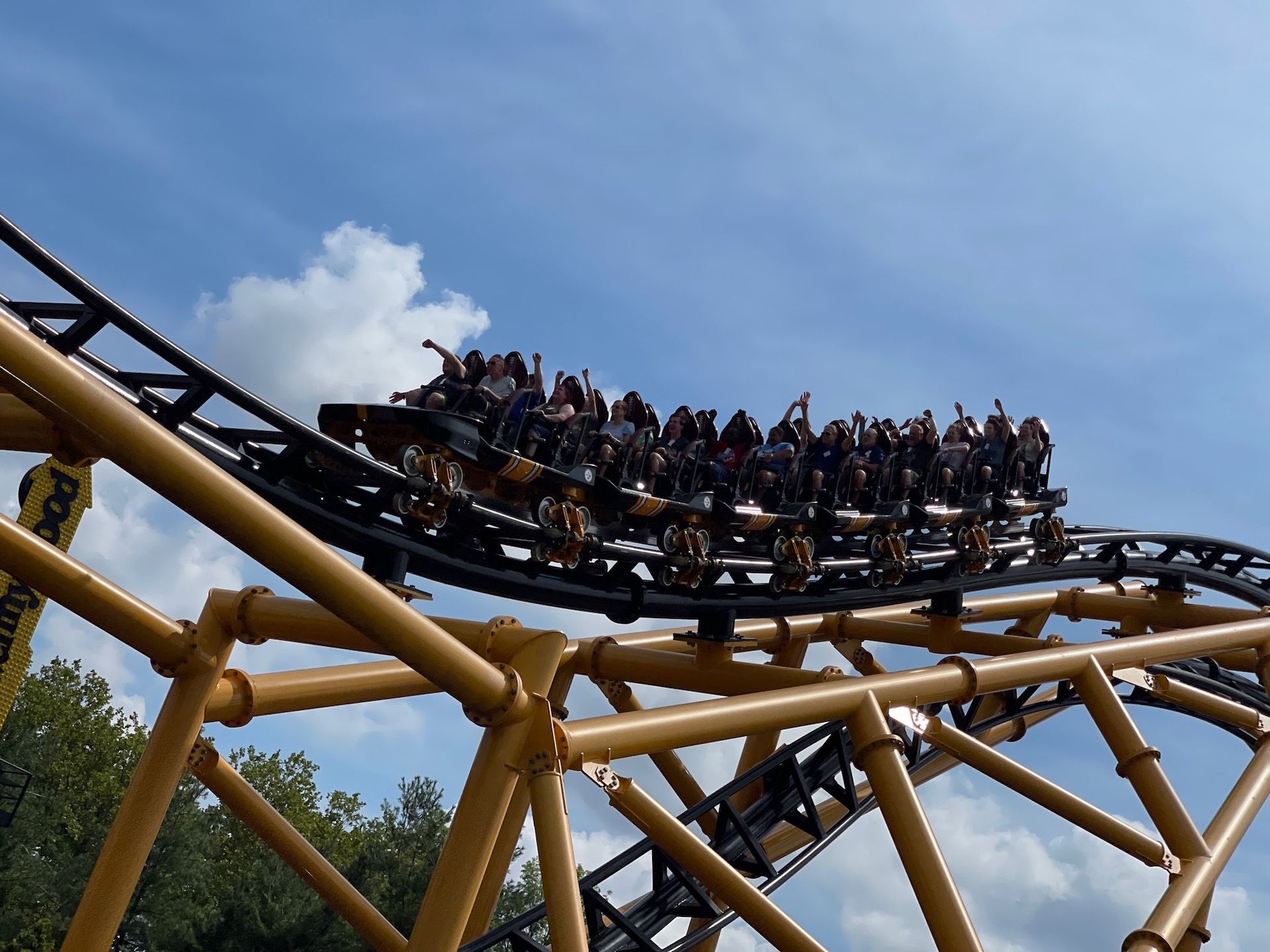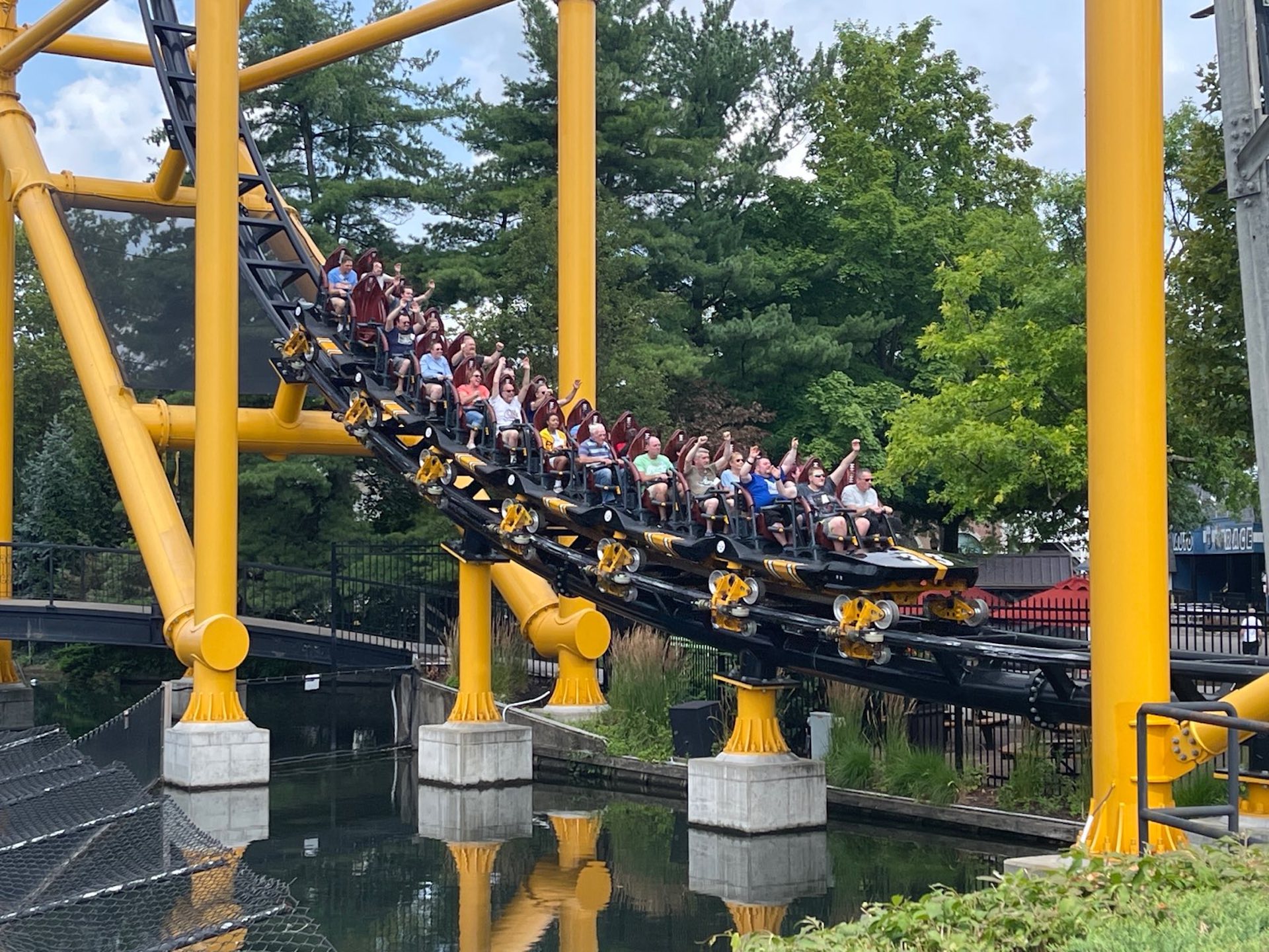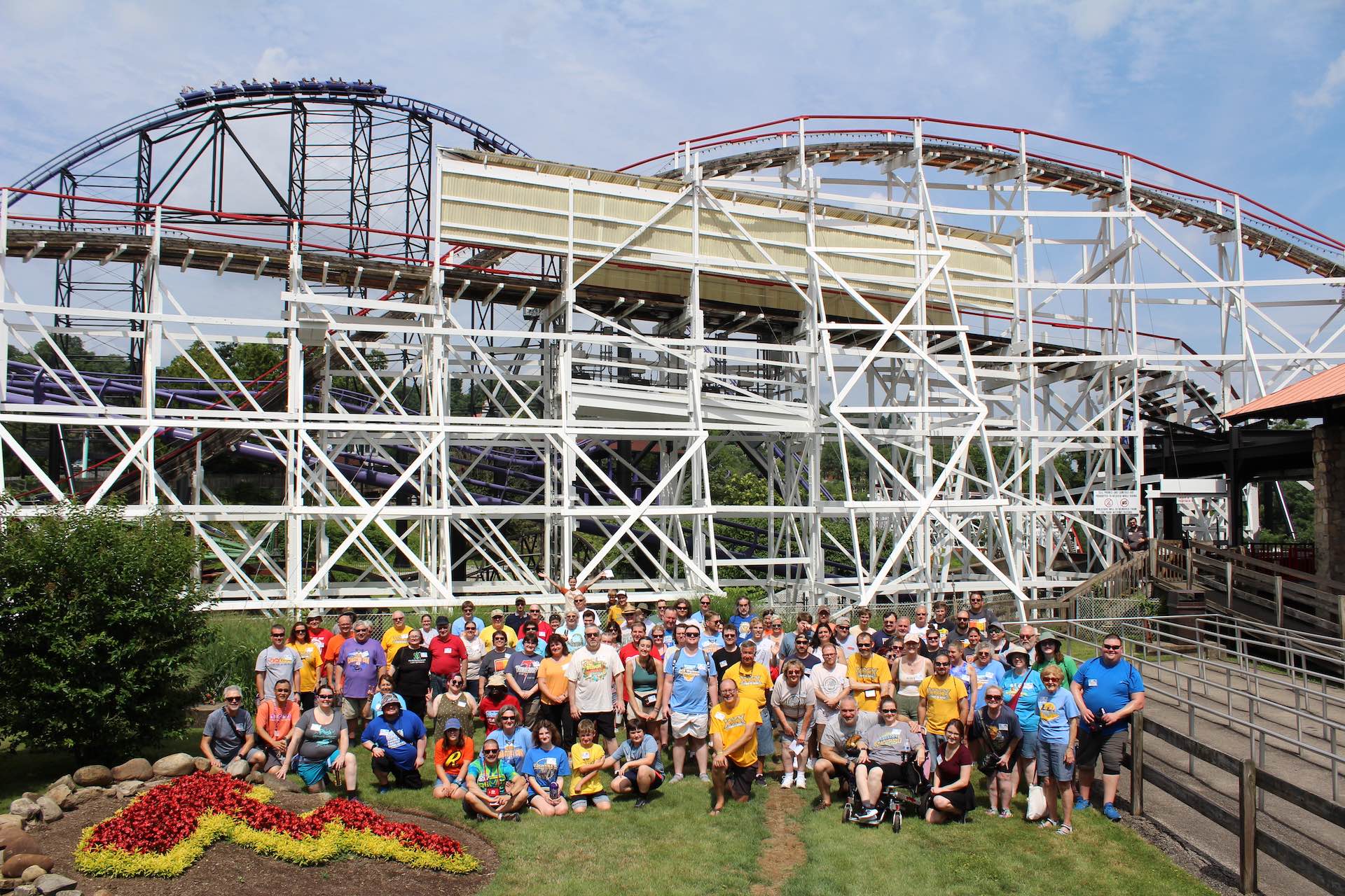 Trains comprised primarily of ACE members enjoy Kennywood’s most recent roller coaster addition, Steel Curtain.